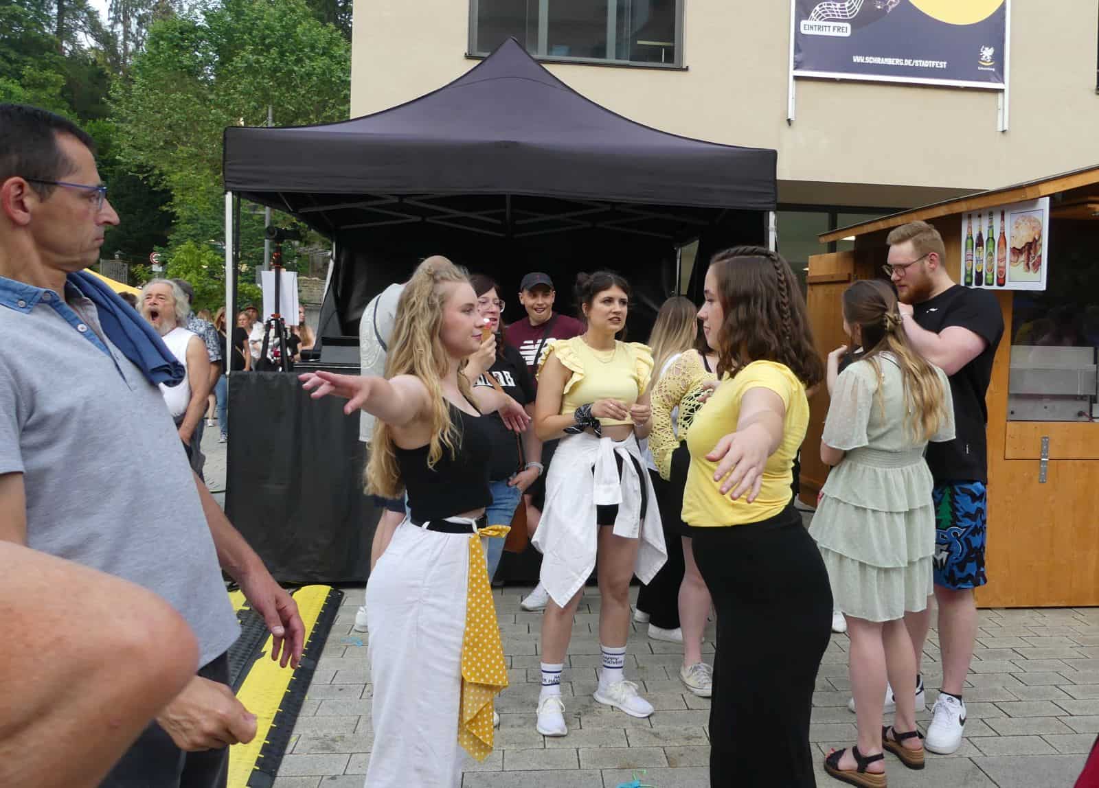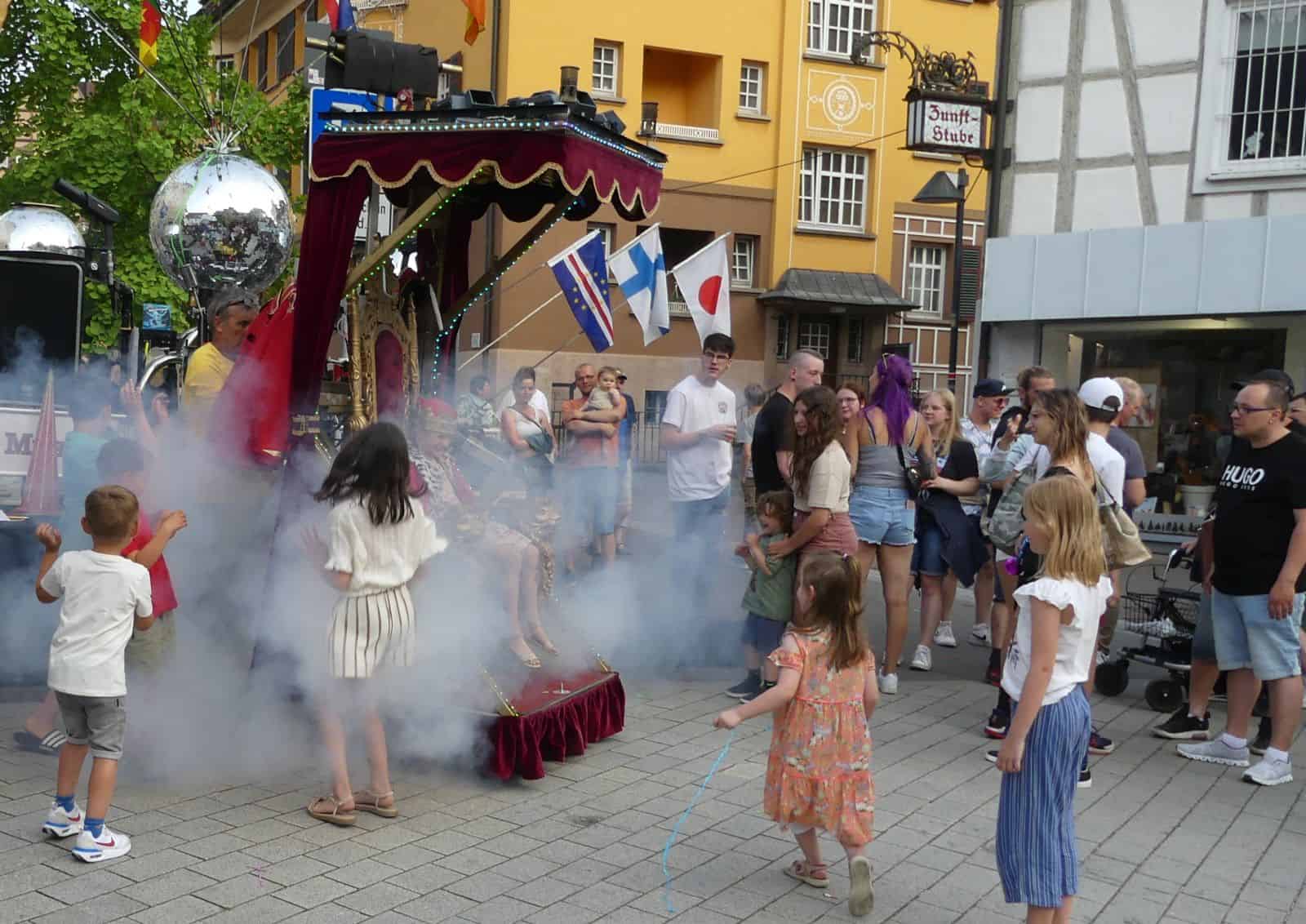 Partystimmung in der Innenstadt bis in die späte Nacht. Auf den beiden Bühnen und an vielen Ständen gab es Programm beim Stadtfest. Showtanz, Rock und Pop-Musik waren angesagt. Kinder konnten sich am Bullenreiten testen oder als kleine Königinnen und Könige auf einem Thron Platz nehmen. Die Besucher genossen den milden Abend und die entspannte Stimmung.