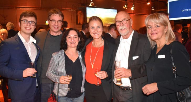 Prominente Besucher: Schriftstellerin und TV-Moderatorein Gaby Hauptmann (links) und der frühere Parlamentarische Staatssekertär Ernst Burgbacher (rechts hinten); dazwischen Doris Pfister, die mit ihrem Gatten, dem Ex-Wirtschaftsminister Ernst Pfister. gekommen war.