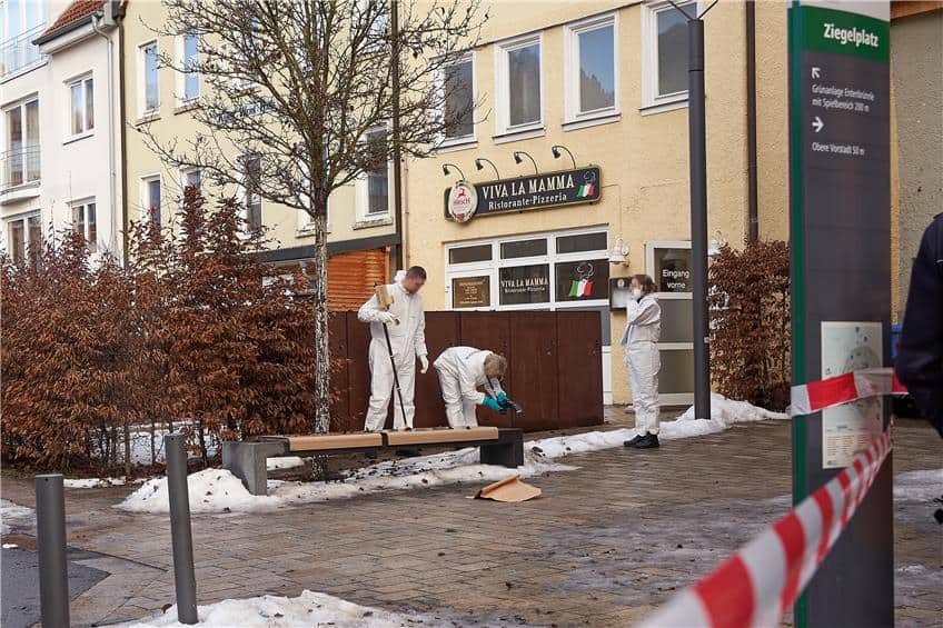 Einige Spuren verteilten sich über einen Teil des Ziegelplatzes bis vor eine Pizzeria, die von der Polizei durchsucht wurde. Der Bereich vor der Pizzeria am Ziegelplatz, sowie der Bereich an der anderen Seite des Gebäudes wurden ebenfalls weiträumig abgesperrt.