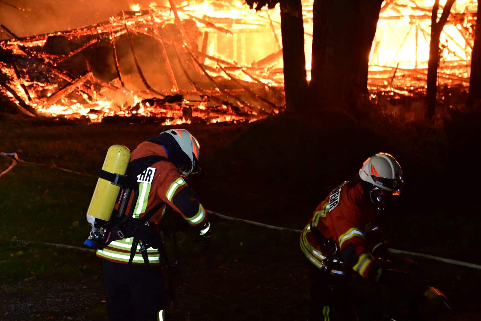 Der Hof ist vollständig niedergebrannt. Der Sachschaden beläuft sich auf etwa 600.000 Euro. Die Ermittlungen zur Brandursache dauern an.