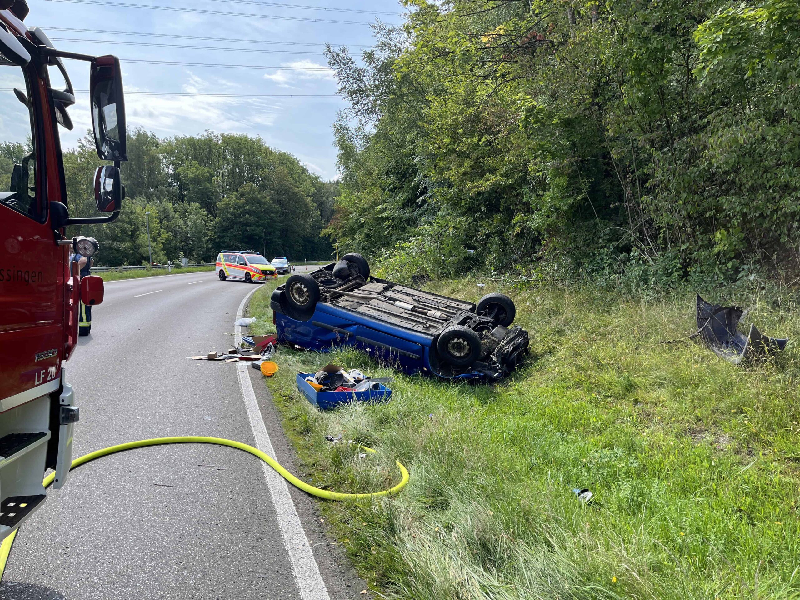 (Kreis Tuttlingen). Der Fahrer eines Kleintransporters verlor aus bislang unbekannter Ursache offenbar die Kontrolle über sein Fahrzeug. Dieses überschlug sich im Kurvenbereich.