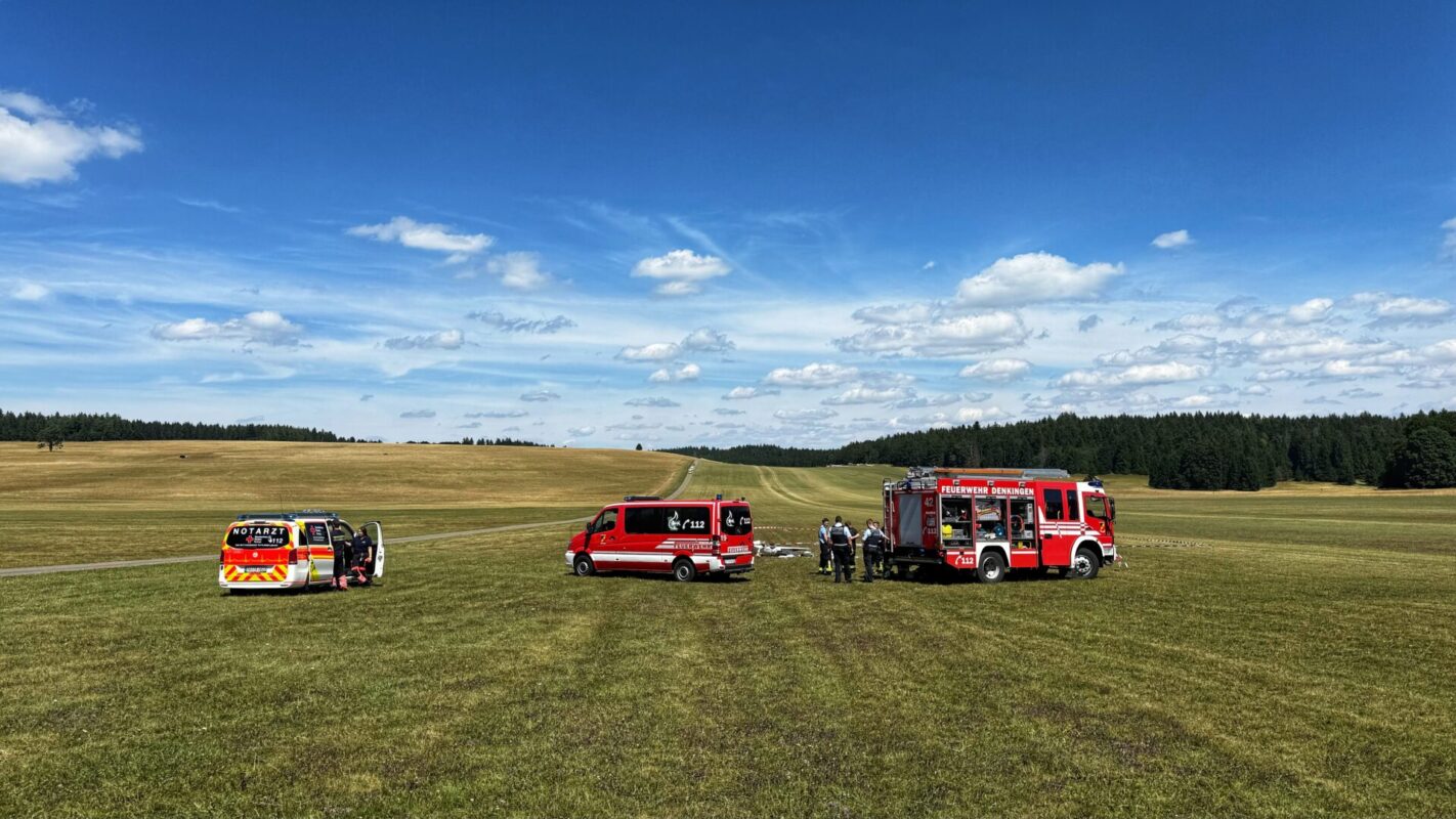 Feuerwehrkräfte aus umliegenden Gemeinden, der Rettungsdienst mit haupt- und ehrenamtlichen Helfern sowie die Polizei mit Streifen- und Kriminalbeamten sind in großer Stärke am frühen Freitagnachmittag zum Klippeneck oberhalb von Denkingen ausgerückt. Auf dem Flugfeld hat sich ein Unfall ereignet. Ein Segelflugzeug stürzte ab.