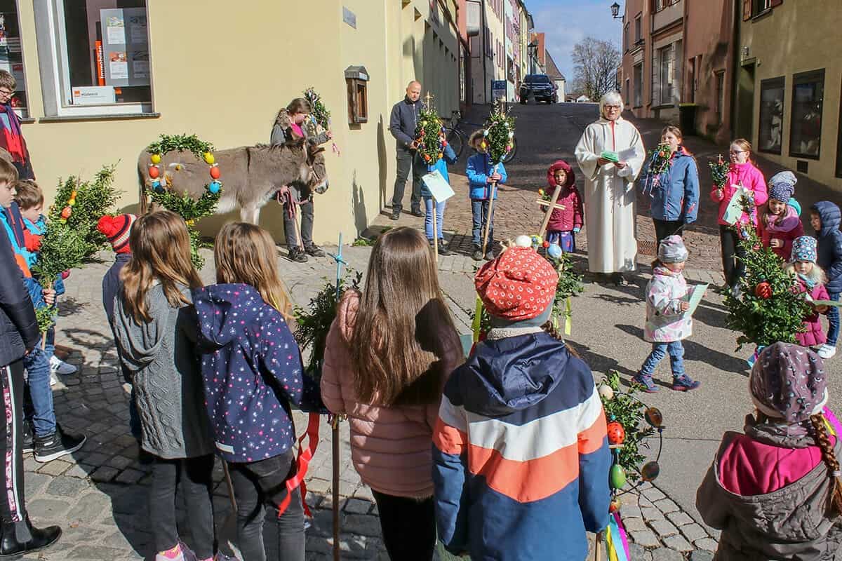 ROTTWEIL. Kinder und Erwachsene brachten ihre kunstvollen, mit Buchs und Eibenzweigen sowie Eiern und farbigen Bändern geschmückten Palmen…