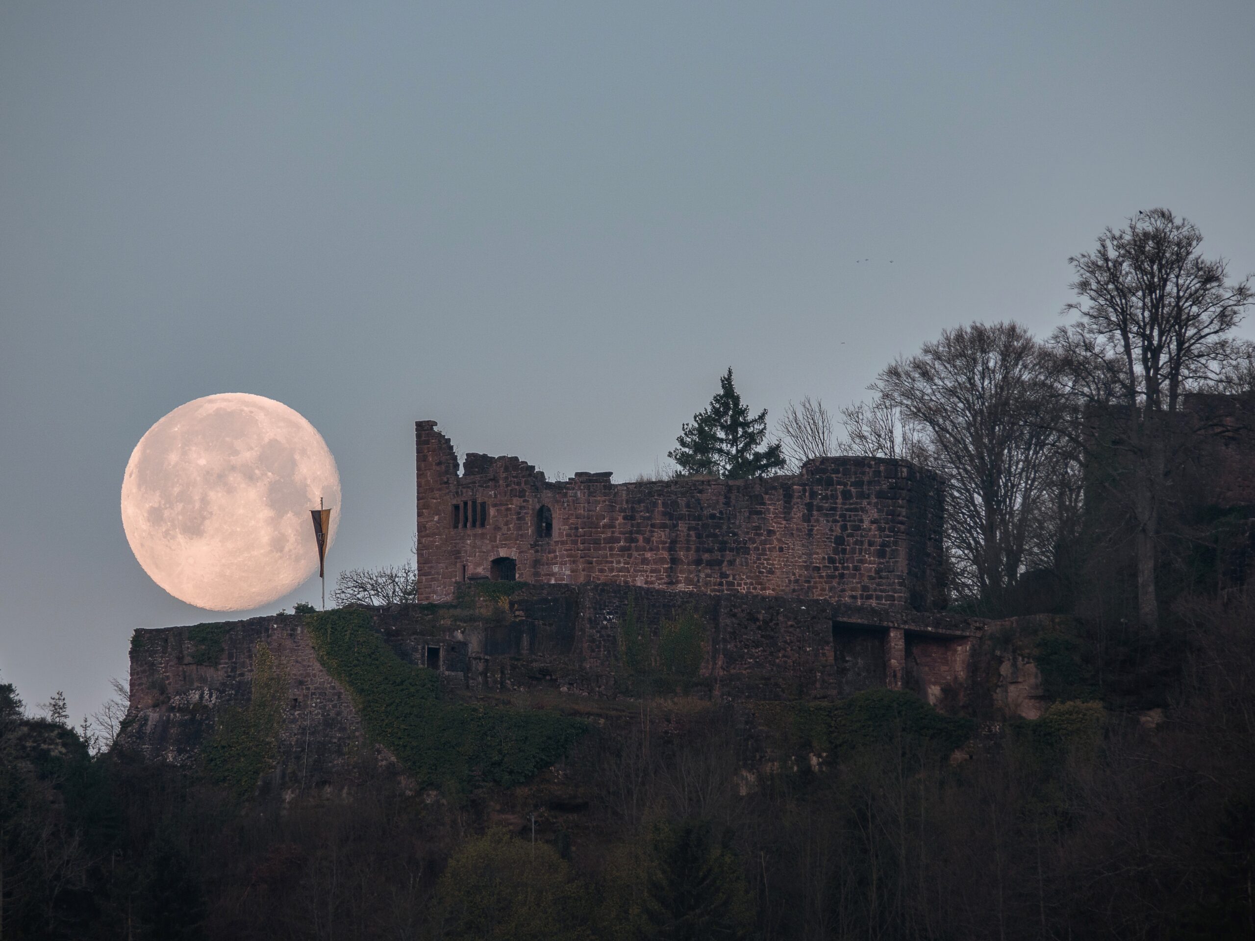 Der Supermond über der Hohenschramberg am frühen Dienstagmorgen. Während der Mond unterging, zeigte sich langsam die Sonne und…
