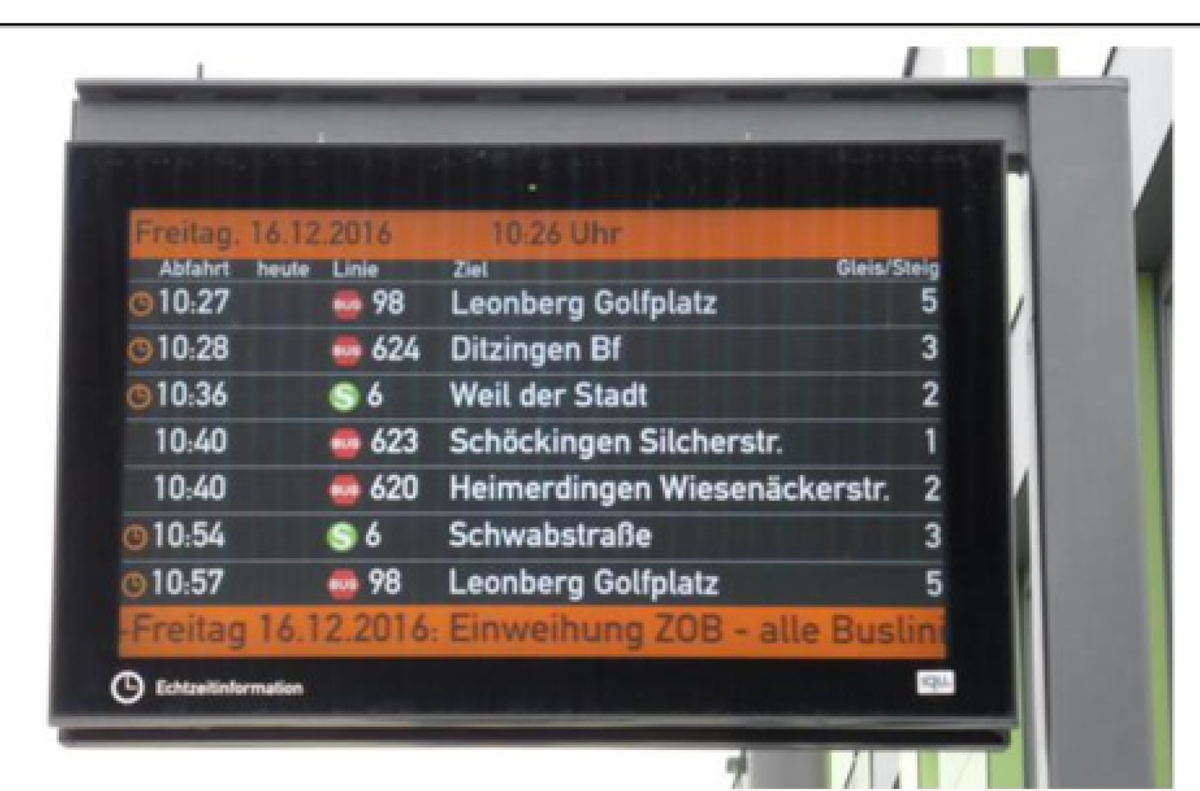 Der städtische Nahverkehr erhält ein Anzeigesystem oder „digitale Fahrgastinformation.“ Sprich: An mehreren (Halte-)Stellen im Bus-Netz zeigen Tafeln, wann…