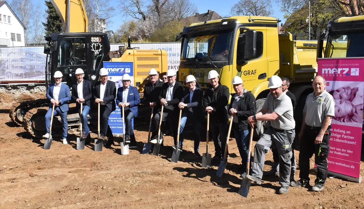 Es geht los: In der Heerstraße, gegenüber vom alten Milchwerk, entsteht der „Kopfbau“ des ehemaligen Moker-Areals. Heute Vormittag…