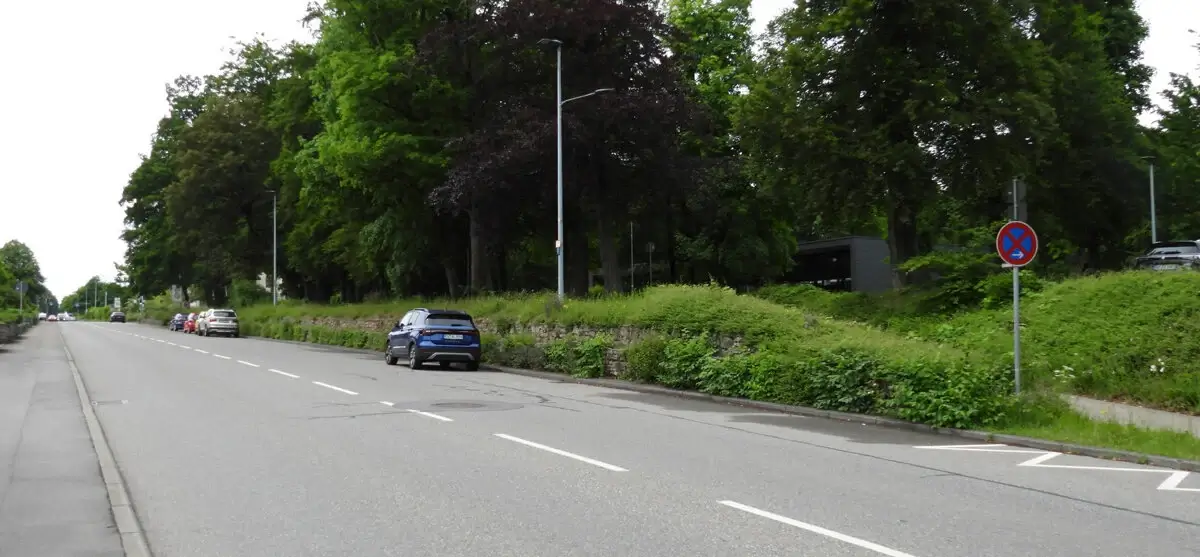 Die Längs-Parkplätze in der Heerstraße vor dem Wäldle und der Mensa sollen wegfallen. Hier soll dafür ein Radweg…