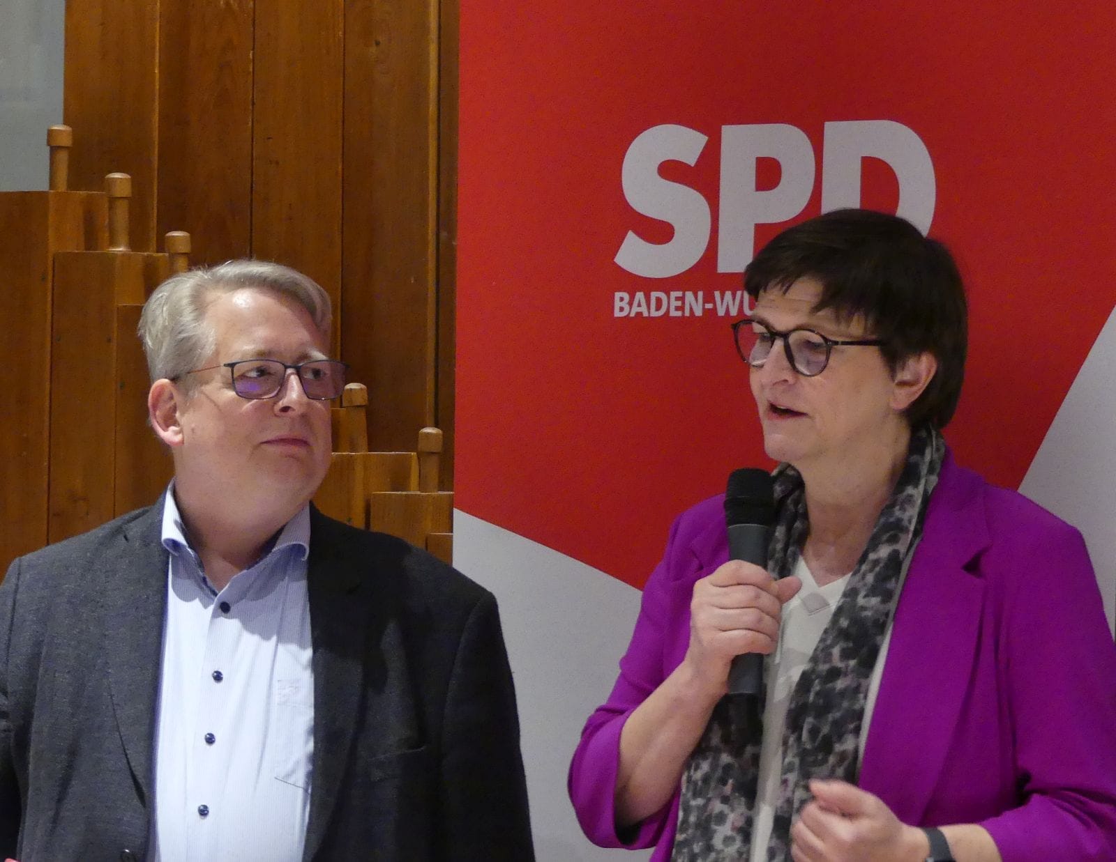Zur Flüchtlingssituation erinnerte Esken an die Arbeitsverbote zu Zeiten hoher Arbeitslosigkeit. Dies sei aber längst vorbei. Viele Geflüchtete wollten arbeiten. Der Beschäftigungsgrad bei Kriegsflüchtlingen aus Syrien sei inzwischen höher als bei der deutschen Bevölkerung. Wichtig sei die Integration auf dem ersten Arbeitsmarkt.