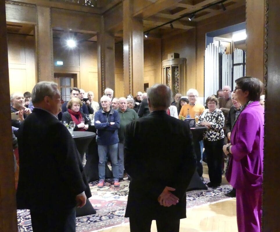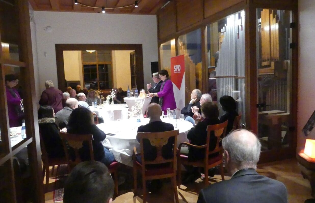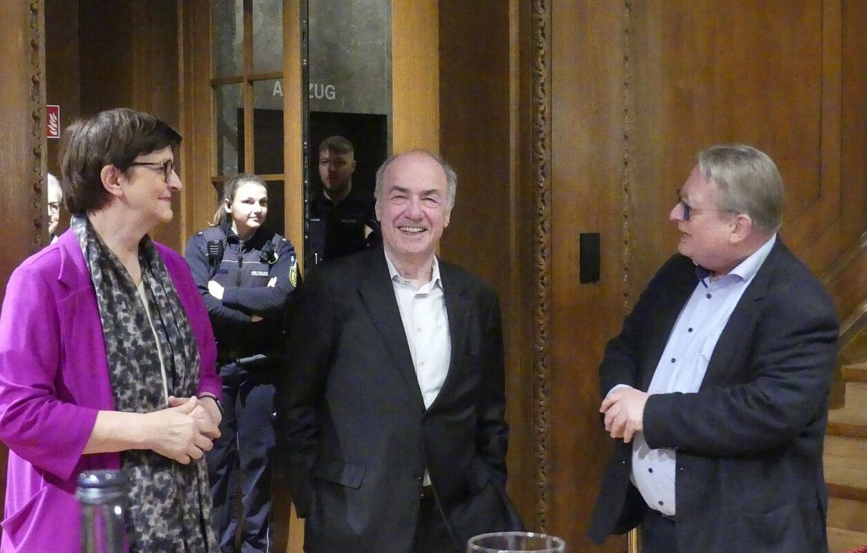 Nach dem ungewöhnlichen Konzert im Foyer begaben sich die Gäste in den Speisesaal von Gut Berneck. Dort hielt Esken eine kurze Ansprache. Sie appellierte an die Bevölkerung, die politische Mitte zu stärken. Angesichts der Kriege in der Ukraine, im Gazastreifen und im Sudan und der Drohungen durch US-Präsident Donald Trump sei die Verunsicherung in der Bevölkerung groß, so Esken.