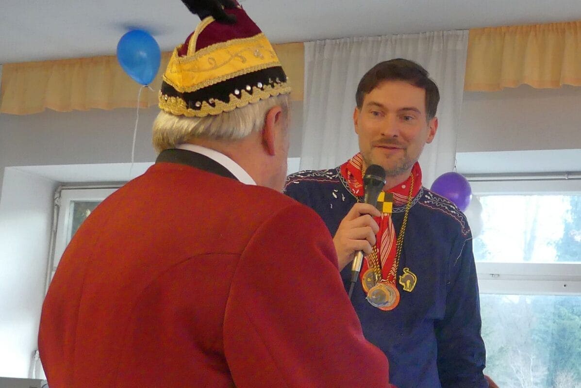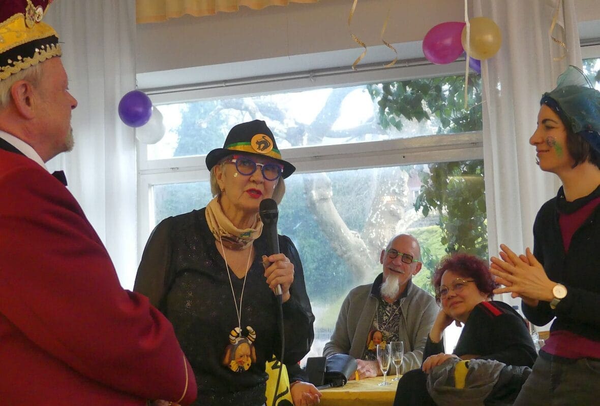 Hedwig Pieper, die Leiterin des Spittel-Seniorenzentrums erhielt den Orden. Sie bedankte sich für einen Besuch der Narrenzunft am Sonntag. Weil ein tückisches Virus umgeht, konnten die Bewohnerinnen und Bewohner in diesem Jahr nicht im Haus gemeinsam Fasnet feiern und auch nicht zum Seniorenball gehen. Umso mehr habe der Besuch der Narren Freude bereitet.