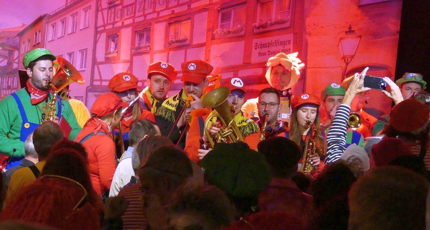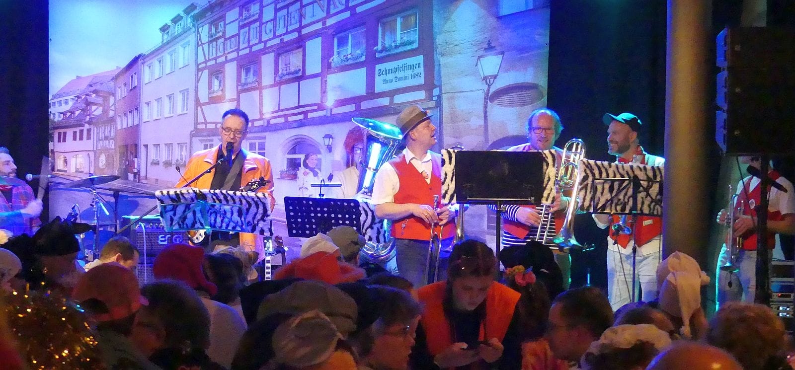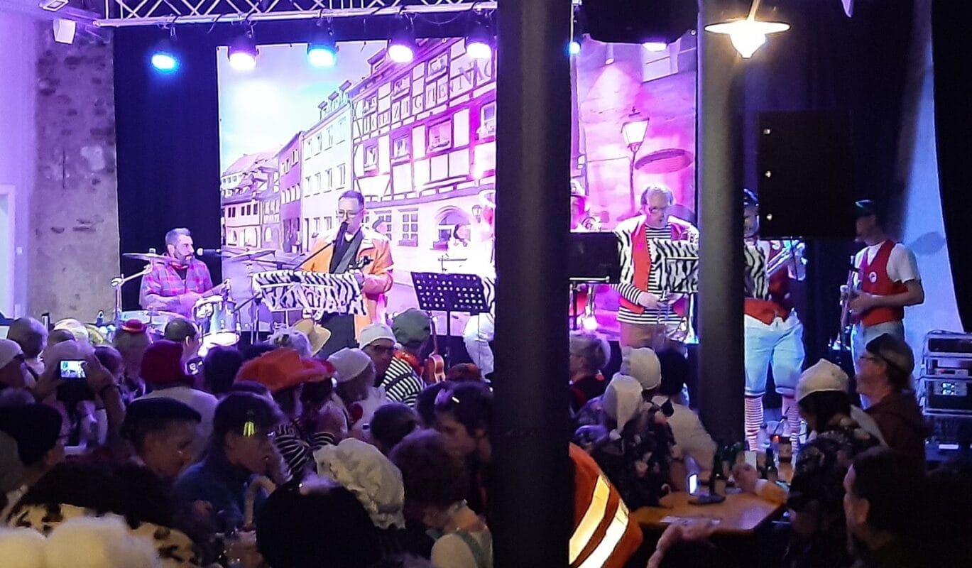 Nach dem offiziellen Programm gaben die „Old Happy-Hiasl-Band“ noch einige Fasnetsklassiker zum Besten. Zum Schluss heizten die „Mauldäschle“, begleitet vom singenden und tanzenden Publikum, nochmals ordentlich die Szene 64 ein.