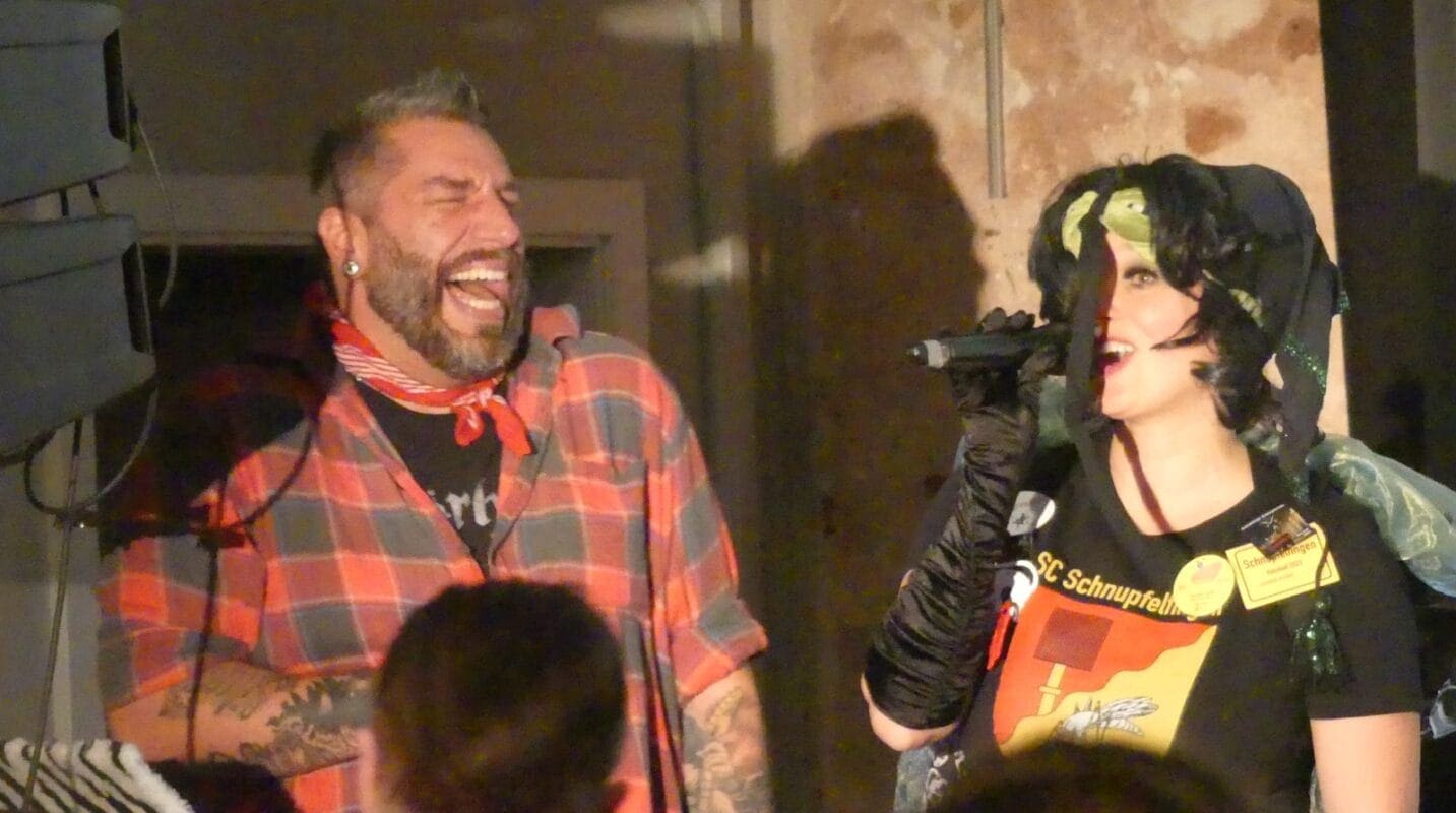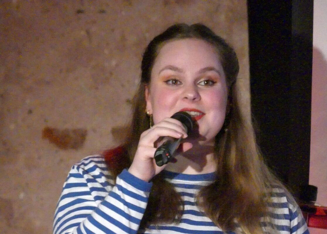 Auch in diesem Jahr begeisterte Yasmin Hettich mit dem zweiten offiziellen Schnupfelfinger Poetry Slam. Da es in diesem Jahr keine „HaBaBar“ gebe, fiel ihr der schlechte Einstiegswitz schwerer. Doch dann erinnerte sie sich an eine Anekdote aus ihrem Privatleben, die sie auf diesen Witz brachte: „Was ist das beste Verhütungsmittel?“ – „Väter.“