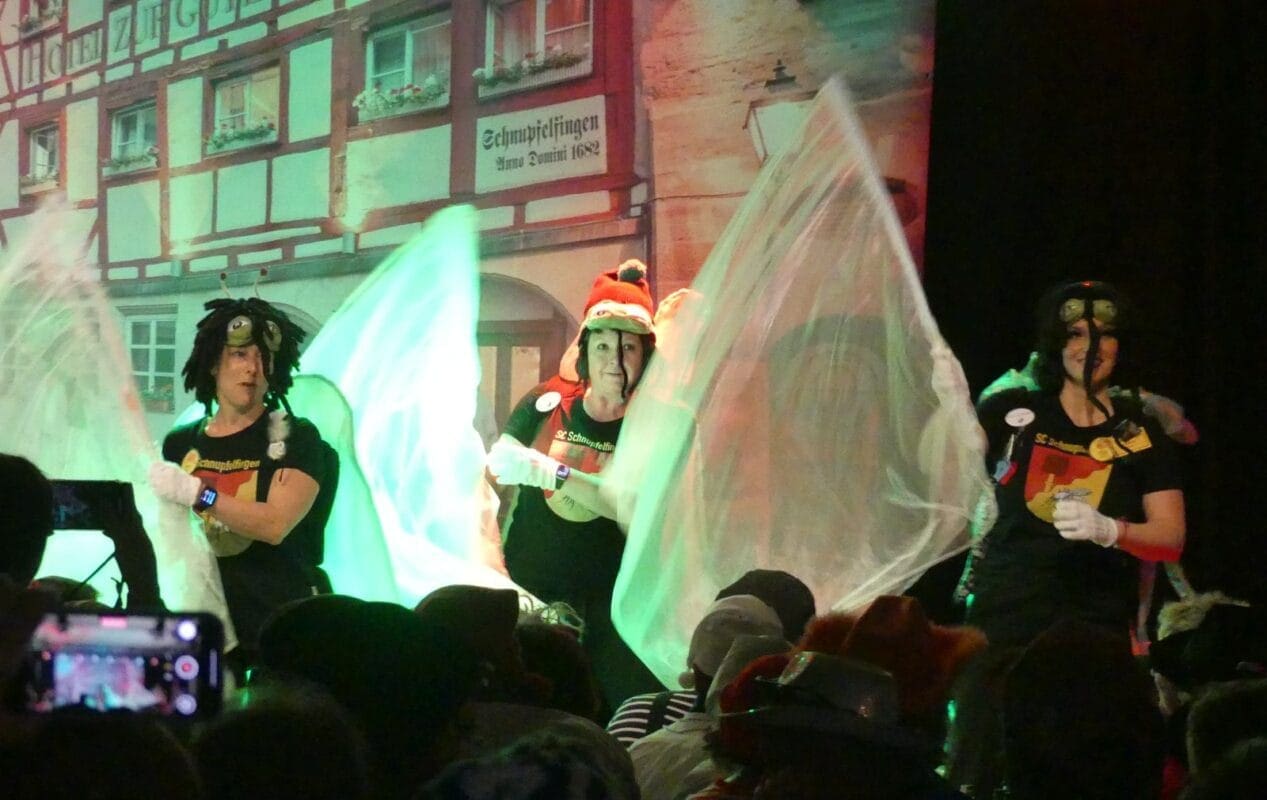 Die drei Schnoogen Ina Bischof, Ines Faller-Langeneck und Katrin Mayer traten daraufhin als Zunftballett auf und erhielten trotz einiger verteilter Stiche den verdienten Applaus.