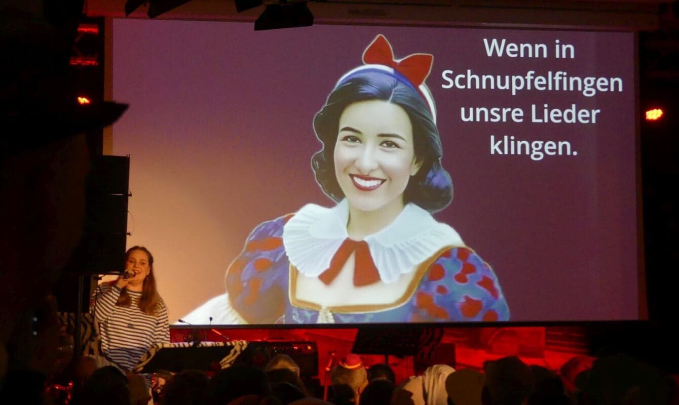Mit „Sei hier Gast“ aus dem Disney-Klassiker „Die schöne und das Biest“ folgte die nächste musikalische Glanzleistung. Sophie Kußberger sang eine Parodie des Stücks und lud Oberbürgermeisterin Eisenlohr in die touristisch blühende Partnerstadt am Rhein ein.