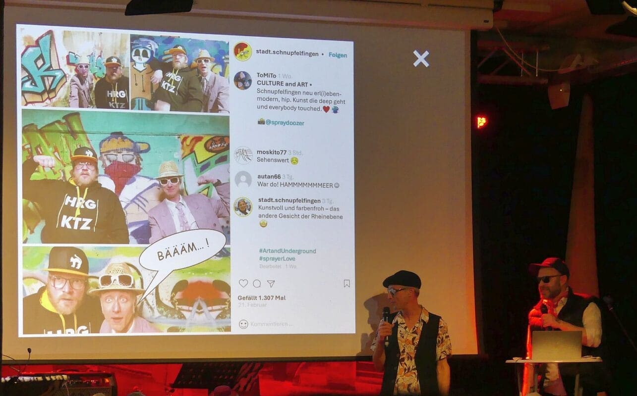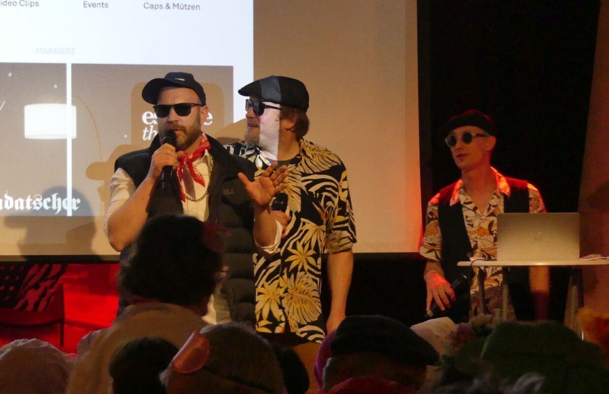 Die drei Influencer „ToMiTo“ alias Torsten Hettich, Tobias Mettmann und Michael Günter betraten als letzte die Bühne. Sie analysierten als erfahrene Social Media Stars mit über 651 Millionen Followern die Internetauftritte der Gemeinde Schnupfelfingen.