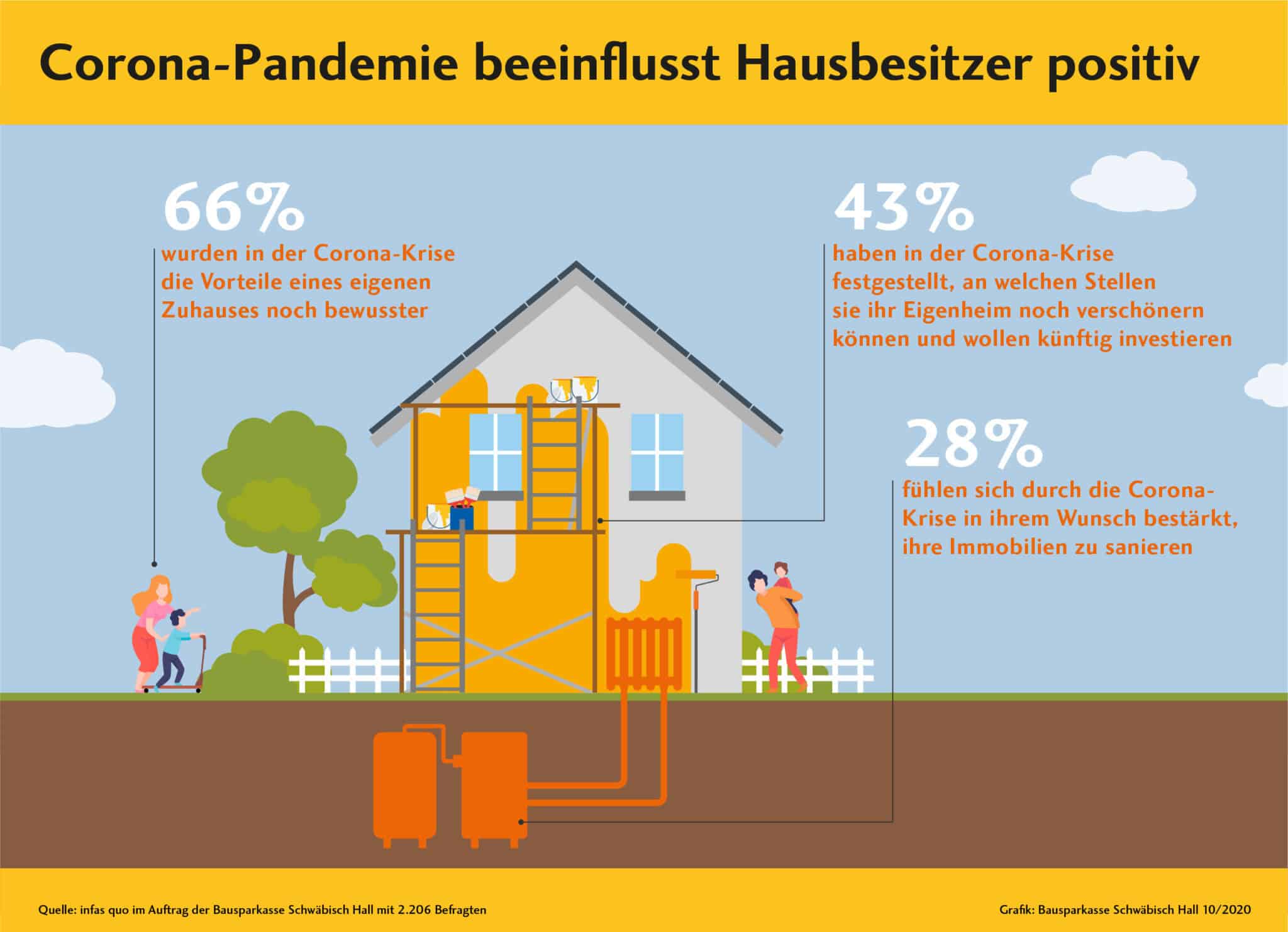 Die letzten Monate haben gezeigt: Sich zu Hause wohlzufühlen, ist wichtiger denn je. Denn egal, ob während des Lockdowns oder im Homeoffice – man verbringt deutlich mehr Zeit in den eigenen vier Wänden. Welche Auswirkungen die Corona-Pandemie auf die eigene Immobilie hat, zeigt eine aktuelle Studie des Marktforschungsinstitutes infas quo im Auftrag der Bausparkasse Schwäbisch Hall.
