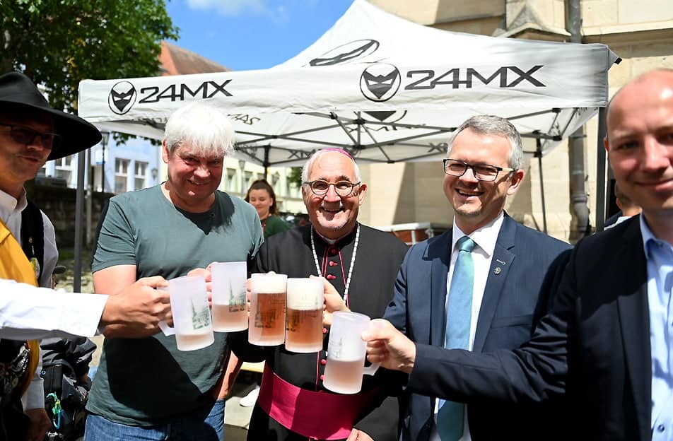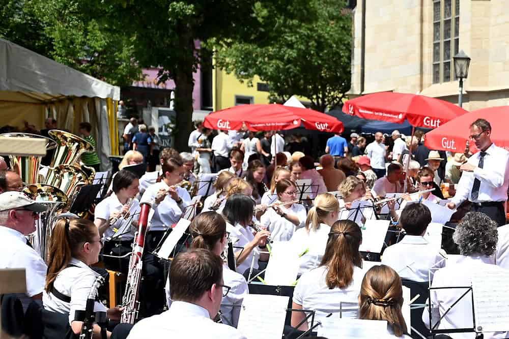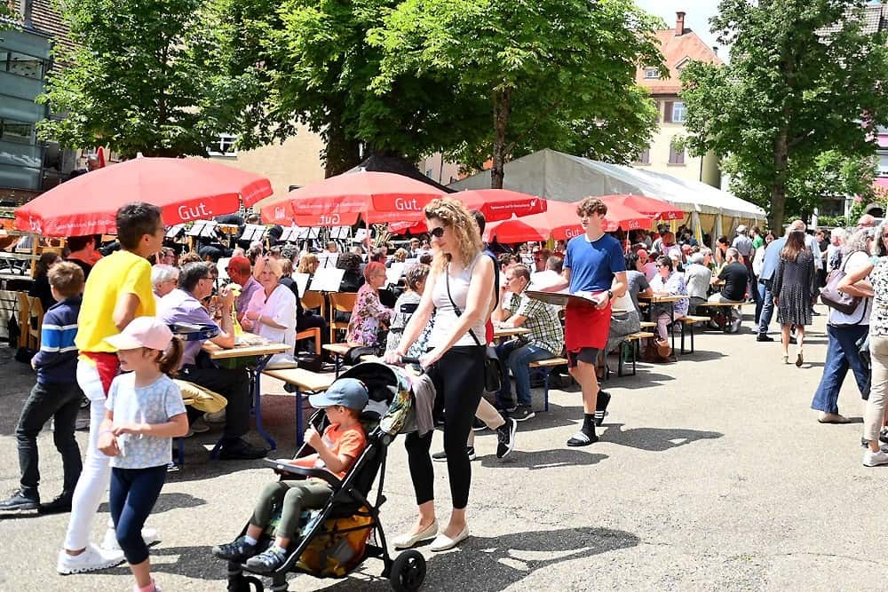 Dem Pontifikalamt schloss sich ein buntes Gemeindefest im Schatten des Münsters an. Bei strahlendem Sonnenschein präsentierten sich dort Gruppen der Gemeinde, die Stadtkapelle trug mit schwungvollen Klängen zur guten Stimmung bei. Auch das eigens zum Jubiläum gebraute Festbier wurde ausgeschenkt.
