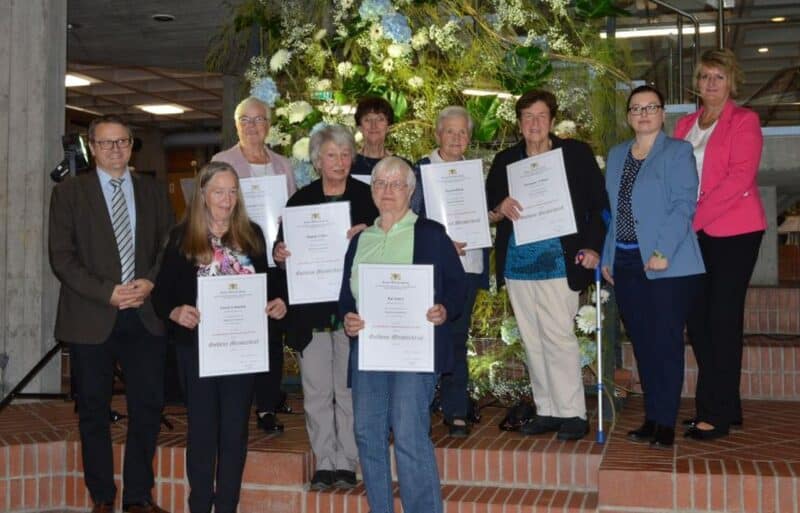 Darüber hinaus überreichte Krumm insgesamt 18 silberne und goldene Meisterbriefe an langjährig in der Ausbildung engagierte Hauswirtschaftsmeisterinnen, darunter Martha Müller aus Schramberg, die einen Goldenen Meisterbrief in ländlicher Hauswirtschaft erhielt.