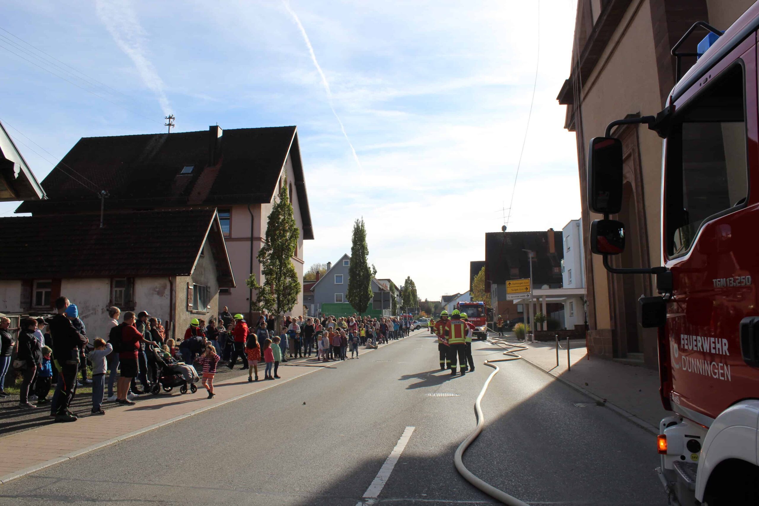 Dunningen – Die Übungsannahme: Bei Reparaturarbeiten zwischen Schiff und dem Dach der Seedorfer St. Georgs-Kirche kam es zu einer unklaren Rauchentwicklung, wobei zwei Personen als vermisst gegolten haben. Eine dritte Person hatte sich in den Kirchturm gerettet und machte sich in über 29 Meter Höhe an einer Turmöffnung bemerkbar, war jedoch aufgrund Verletzungen nicht in der Lage, sich selbst zu retten. Das Übungsszenario wurde den zahlreichen Zuschauern durch den Abteilungskommandanten Andreas Jehle erklärt und kommentiert, sodass auch die anwesenden Gäste wussten, was die Feuerwehr in so einem Fall unternimmt.