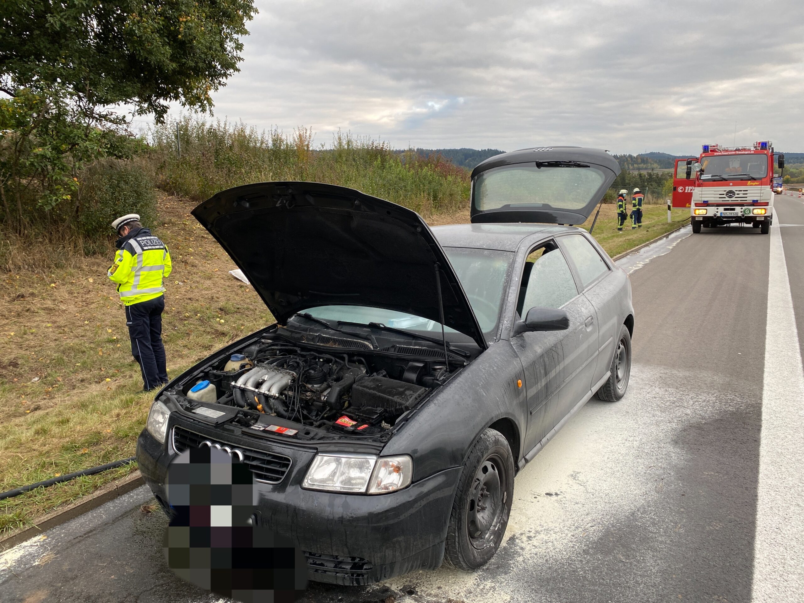 Einsatz für die Feuerwehr Trossingen und das THW auf der A 81 zwischen Villingen-Schwenningen und Rottweil: Ein älterer Audi hatte zu brennen begonnen.