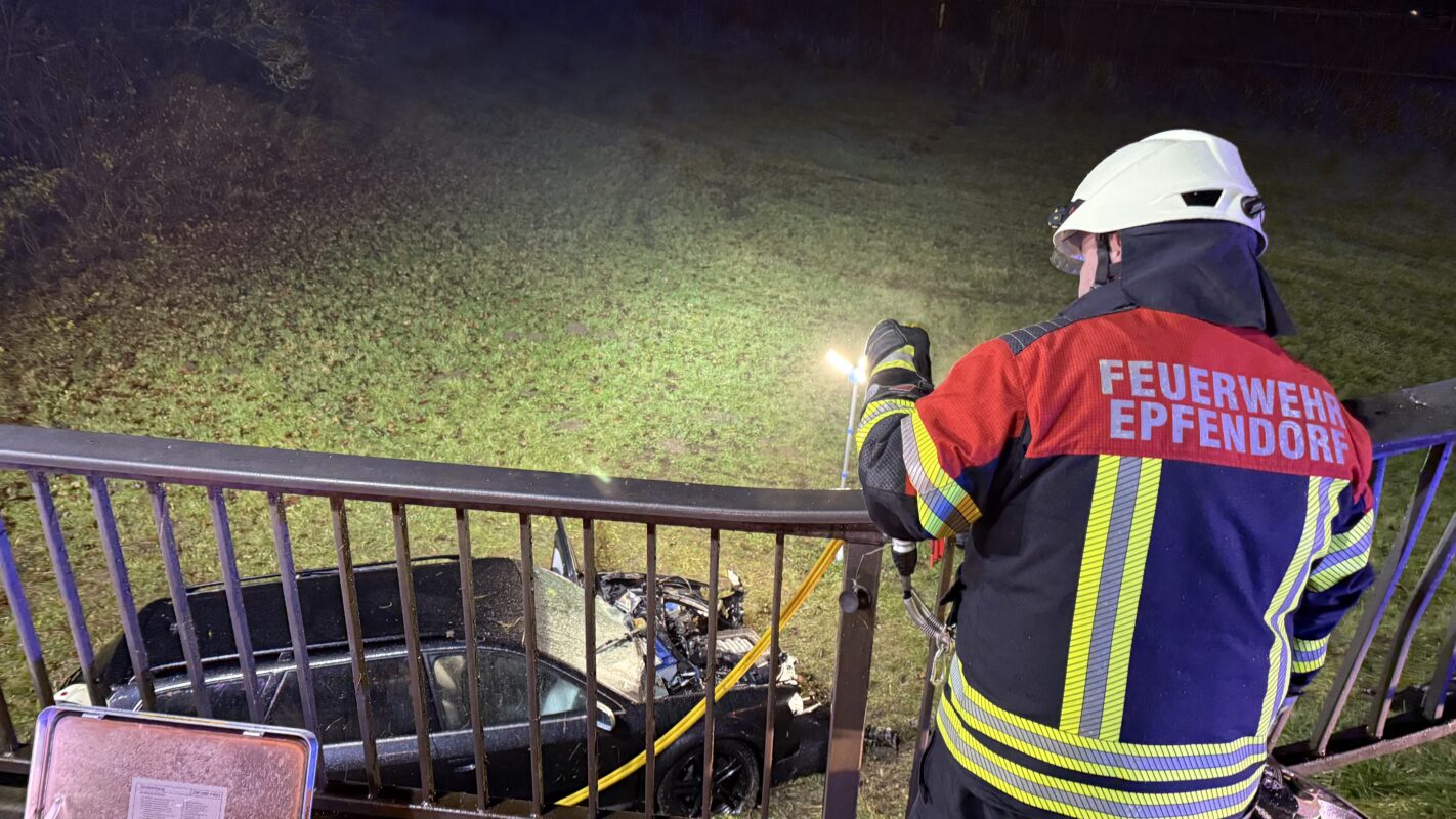 Der Unfall geschah auf der K5500 zwischen Altoberndorf und Epfendorf. Der Wagen, ein Audi S6, kam aus bislang ungeklärter Ursache zunächst nach rechts von der Fahrbahn ab, durchbrach einen Teil eines Brückengeländers und stürzte dann die Böschung hinab. Dort blieb er schwer beschädigt liegen.