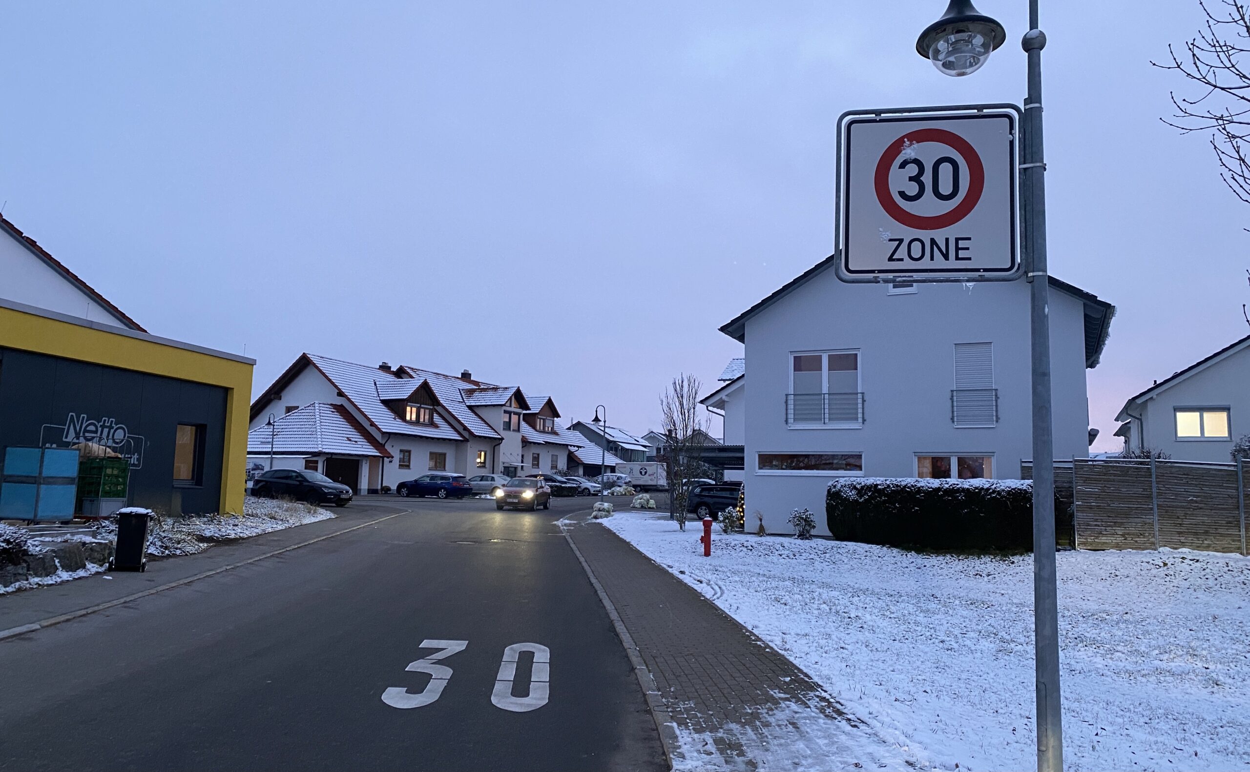 Wobei – so ganz untätig war die Gemeinde, waren Bürgermeister Türk und sein Team ja nicht. So ist inzwischen eine sogenannten „Tempo-30-Aufmalung“ aufgebracht worden. Ein Anwohner wendet allerdings ein, dass es diese an selber Stelle früher schon gegeben habe, dass sie nach Asphaltarbeiten bloß nicht erneuert worden sei. Und direkt vor der Kreuzung hängt eine Geschwindigkeitsanzeige (die auch schon vor dem Unfall dort gehangen hatten, deren Akkus damals aber schon lange leer gewesen sind).