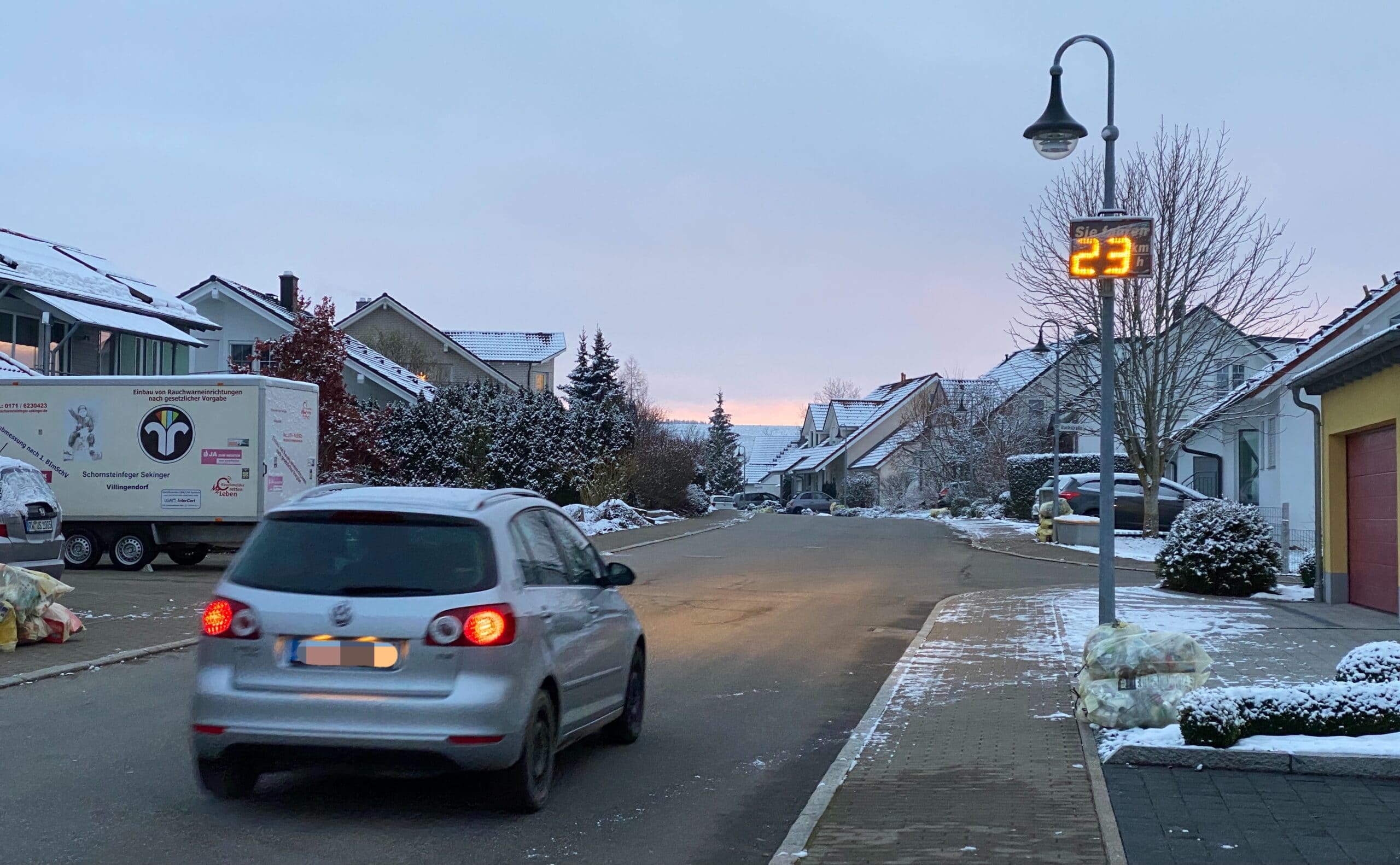 Für die Gemeinde Villingendorf ist die Sache aber „bisher“, wie sie schreibt, erledigt. Auch an anderer Stelle, nur ein paar Meter von dieser Einmündung weg. Dort werden Fuß- und Radverbindungen zwischen den Anwohnerstraßen als Abkürzungen missbraucht. Bis zu sechsmal die Woche braust dort ein Paketdienst entlang, beobachtet ein weiterer Anwohner. Seine Frau habe kürzlich samt Kinderwagen wegen einem dieser Lieferanten in den Dreck ausweichen müssen. Der Weg ist gerade mal so breit wie ein Sprinter. Er sei deshalb immer wieder bei der Gemeinde vorstellig geworden. Eine Stange, ein Poller? Kommt beides nicht. Der Bürgermeister soll ein größeres Schild versprochen haben. Bisher hängt dort ein „Nur für Fußgänger“-Schild. Bald soll ein neues, dieses runde, blaue kommen: Sonderweg für Fußgänger/Radfahrer. Ob das die Sprinter-Fahrer von ihren Abkürzungen abhält?