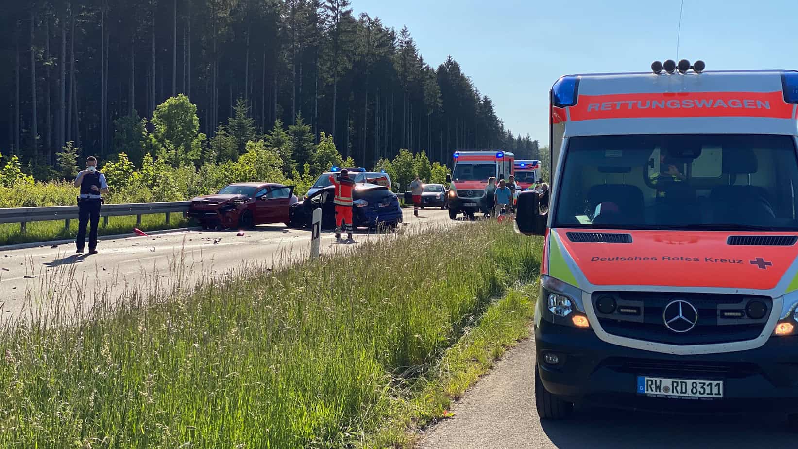 Das DRK war mit mehreren Rettungswagen vor Ort. Auch ein Rettungshubschrauber ist angefordert worden. Dies laut einem Polizeisprecher, um genügend Einsatzkräfte an den Unfallort zu bringen.