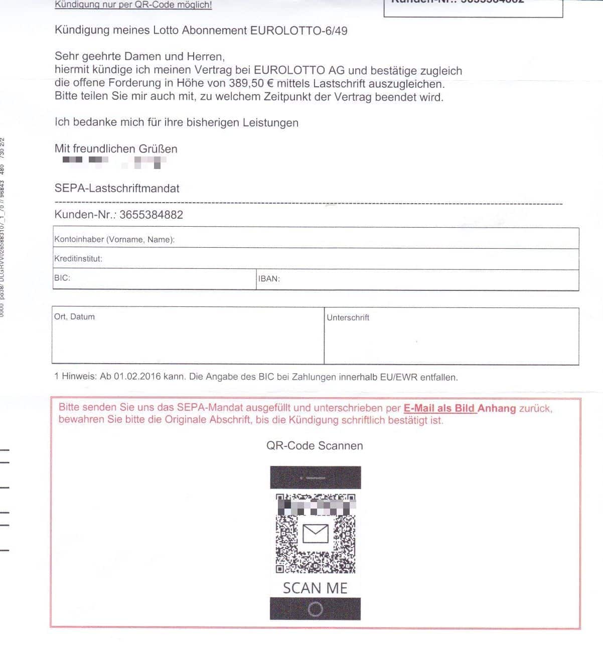 Angefügt war ein Formular. Darauf konnte Lückenhäuser sein „Euro-Lotto-Abo“ kündigen und gleich ein SEPA- Lastschriftmandat erteilen. Dann würden die fälligen 389,50 Euro von seinem Konto abgebucht.