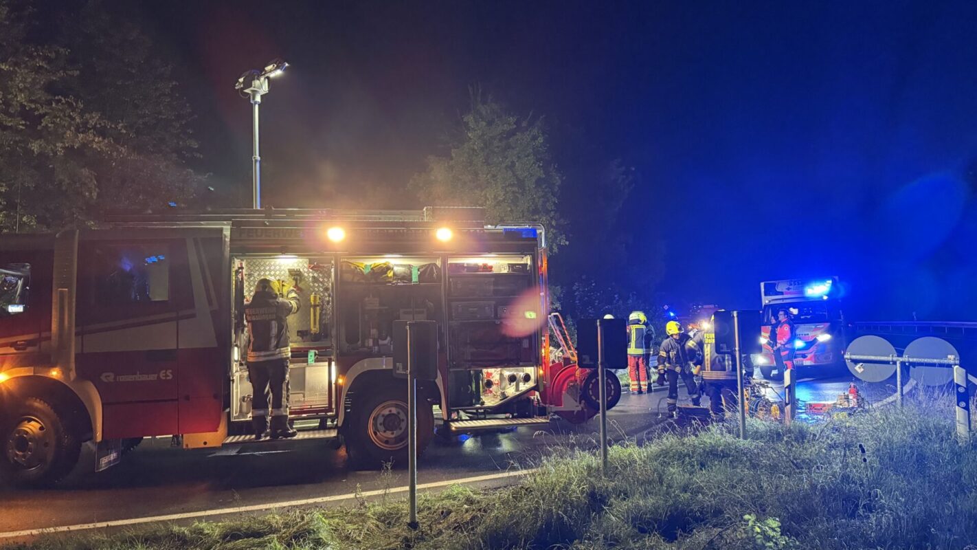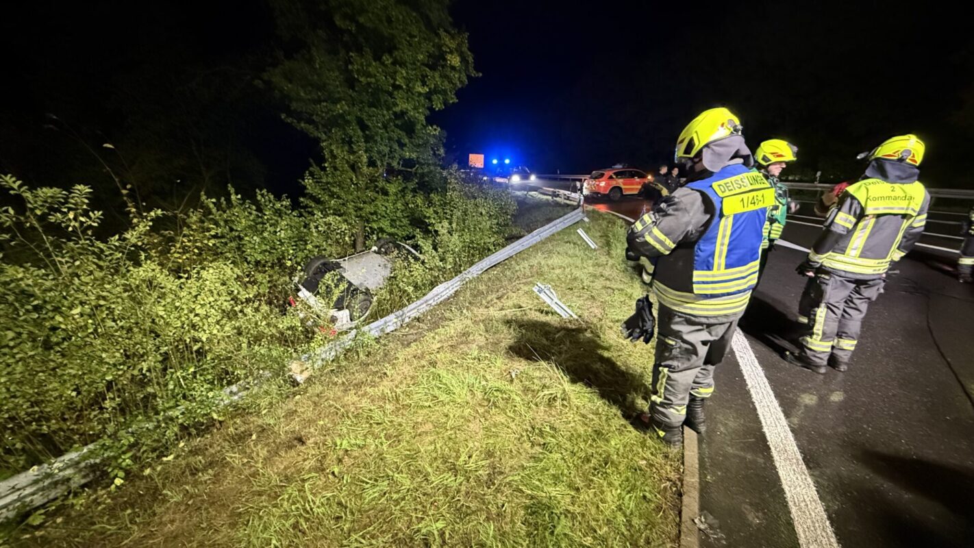 Deshalb leitete die Deißlinger Wehr unter dem Kommando von Fabian Frank schnelle Rettungsmaßnahmen ein – zwar konnte der Fahrer den Wagen eigenständig verlassen, aber es war zunächst unklar, ob noch jemand im Auto ist. Während der Mann also vom Rettungsdienst in einem Rettungswagen versorgt wurde, kämpften sich die Einsatzkräfte der Feuerwehr zu dem verunfallten BMW vor. Feuerwehrsprecher Sven Haberer begründete das Vorgehen gegenüber der NRWZ so: „Wir treffen unsere Entscheidungen nach eigener Erkundung. Wir können uns nicht auf die ersten Aussagen von Verunfallten verlassen. Diese könnten unter Schock stehen oder etwas vertuschen wollen.“