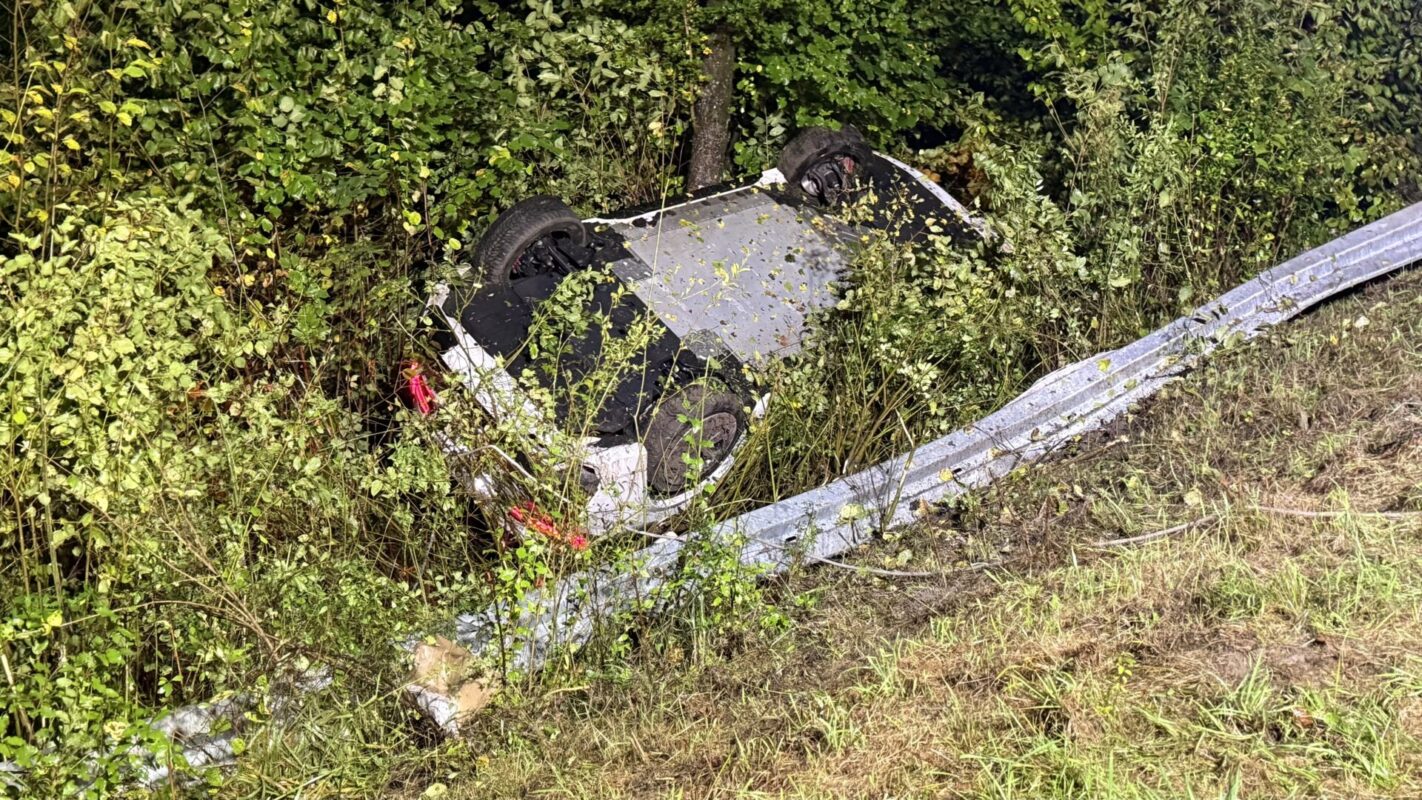 Der junge Mann war mit seinem BMW auf der zweispurig ausgebauten – und an diesem Morgen regennassen – Bundesstraße 27 unterwegs, verließ diese dann über die Abfahrt Trossingen / Villingen-Schwenningen. Allerdings nicht, indem er der langgezogenen Rechtskurve gefolgt wäre. Vielmehr raste das Fahrzeug geradeaus über den grasbewachsenen Teiler der Ab- und Auffahrt hinweg, riss eine Leitplanke um und raste dann noch in eine Senke, wo es erst ein Baum und Sträucher stoppten. Völlig demoliert steckte der Kleinwagen im Gestrüpp. Lag auf dem Dach und zeigte nur den Unterboden.