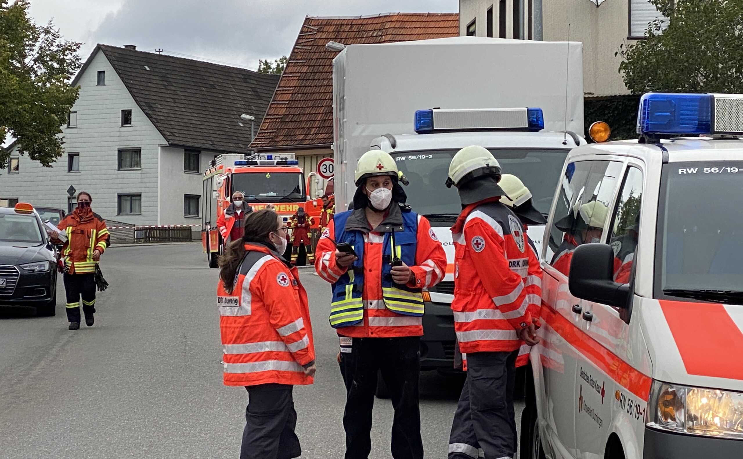 Das Rote Kreuz hielt sich mit ehrenamtlichen Kräften samt dem stellvertretenden Kreisbereitschaftsleiter Denny Barowka und einem Rettungswagen bereit. Verletzt wurde nach bisherigem Stand niemand. Die DRKler versorgten die Einsatzkräfte zudem mit Lebensmitteln während des einige Stunden andauernden Einsatzes.