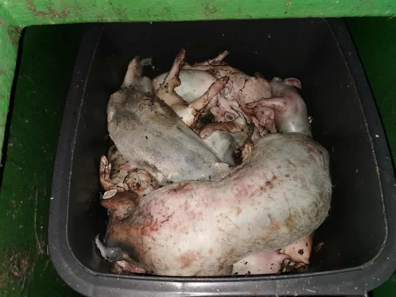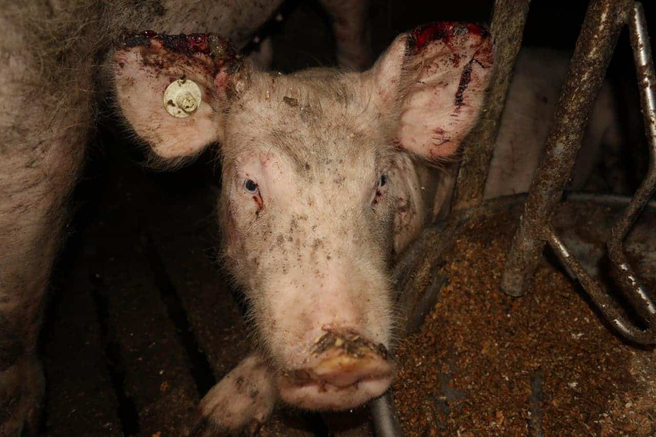 Hunderte, verletzte Tiere, viele mit schwersten Verstümmlungen, sowie zahllose, kranke Tiere – ausdrücklich nicht isoliert. Schwache Tiere werden von ihren gestressten Artgenossen bei lebendigem Leib aufgefressen, Kadaver zerfetzt und im Stall stapeln sich die toten Körper der Schweine. Im Bereich der Zuchtsauen lagen Tiere eingezwängt in engen Kastenständen in einer wässrigen Brühe aus Fäkalien. Im Stall befanden sich sterbende und stark abgemagerte Tiere, wie zum Beispiel Ferkel oder eine von Wunden übersäte Zuchtsau, und schwerstverletzte Jungschweine. Der Landwirt misshandelt auf versteckten Kameraaufnahmen Schweine. Er trägt sie an einem Fuß umher, schlägt sie und wirft die Tiere. Der Stall ist verdreckt, voller Fliegen und Kot.