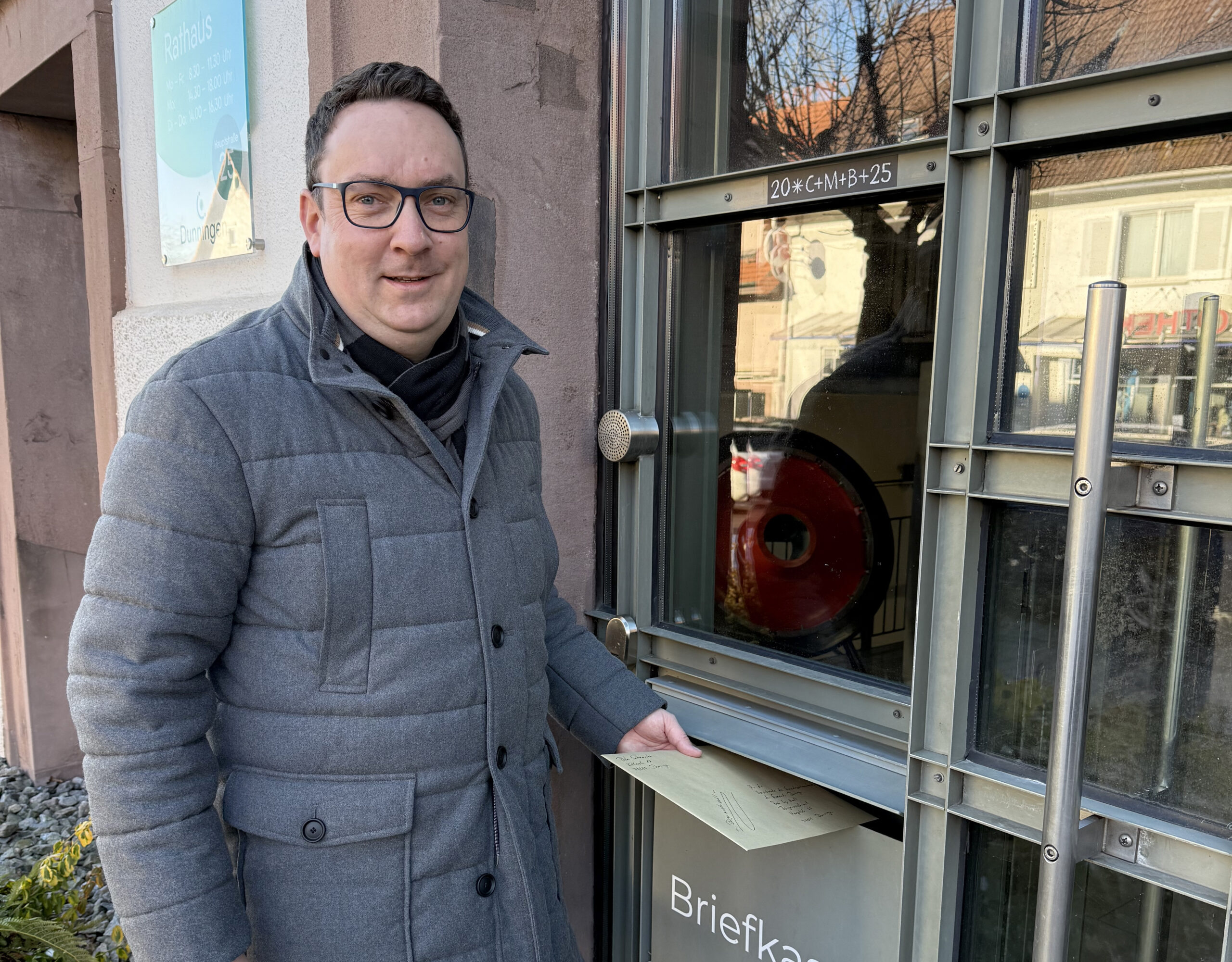 Wie bereits beim Bürgertreff im Dezember angekündigt, bewirbt sich Peter Schumacher um eine zweite Amtszeit als Bürgermeister in seiner Heimatgemeinde Dunningen. Heute, am ersten Tag der Einreichungsfrist, wirft Schumacher seine Bewerbungsunterlagen im Dunninger Rathausbriefkasten ein.