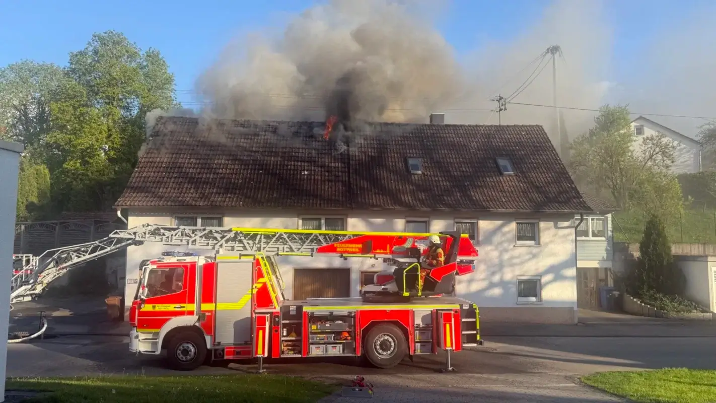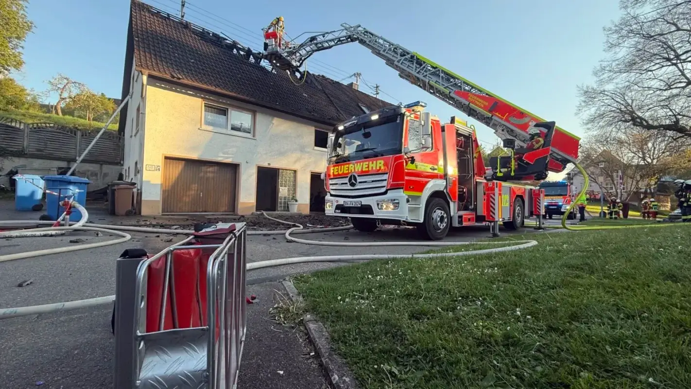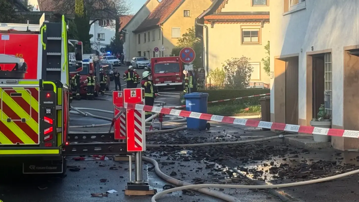 In einer ersten Meldung hieß es, es hätten sich Explosionen im hinteren Bereich des Gebäudes ereignet. Das ist unbestätigt. Der Dachstuhl des in der Ortsmitte gelegenen Hauses stand allerdings zwischenzeitlich in Vollbrand. Hinweise auf mögliche Verletzte gibt es aktuell nicht. „Beim Eintreffen der ersten Kräfte waren keine Personen mehr im Gebäude. Es gibt also keine Betroffenen“, bestätigte Kreisfeuerwehrsprecher Sven Haberer.