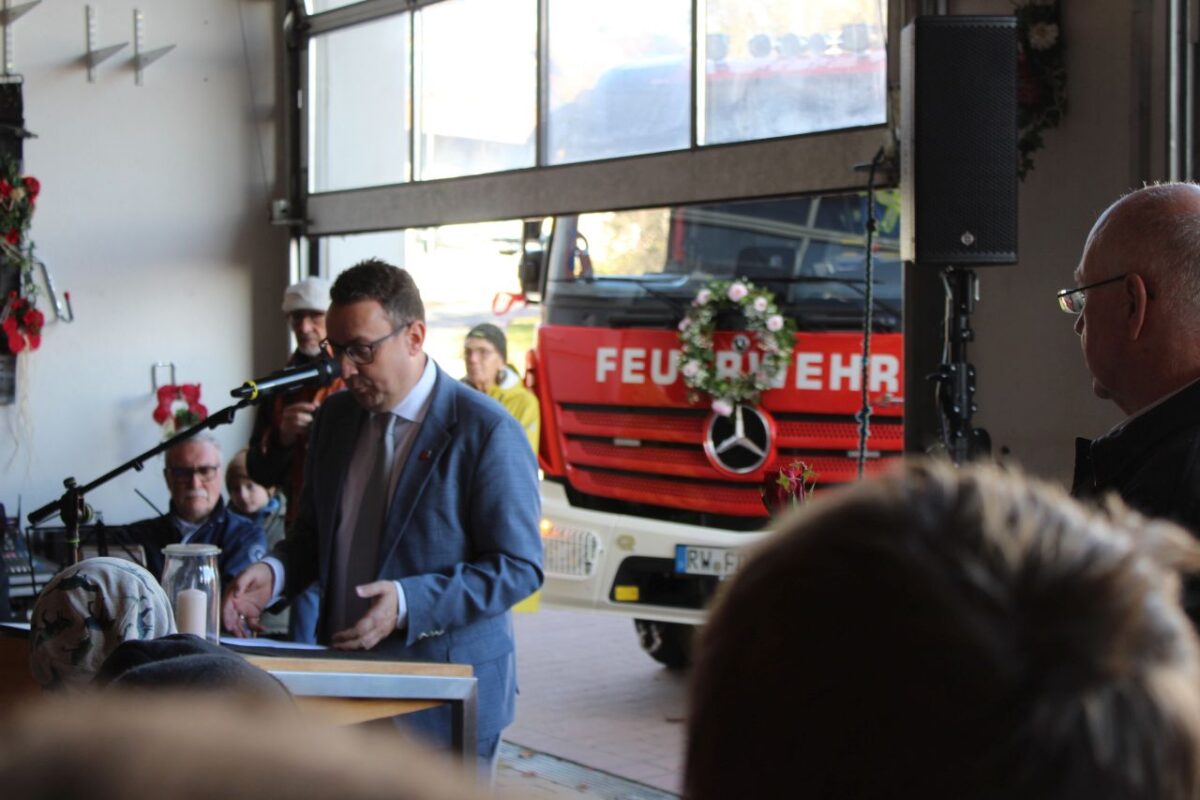 Bürgermeister Schumacher erläuterte den Weg von der Planung bis zur Indienststellung, so konnten zwei Projekte des Feuerwehrbedarfplanes abgeschlossen werden und sprach von einem Quantensprung der Fahrzeugtechnik, welche für die Sicherheit der Bürgerinnen und Bürger stehe. Deshalb sei es ein besonderer Tag, nicht nur für die Feuerwehr, sondern für die gesamte Gemeinde. Vor allem die Finanzierung des MTW hob er hervor, zumal hier durch die Feuerwehr fast die Hälfte der Kosten durch den Betrieb des kommunalen Corona-Testzentrum beigesteuert wurde.