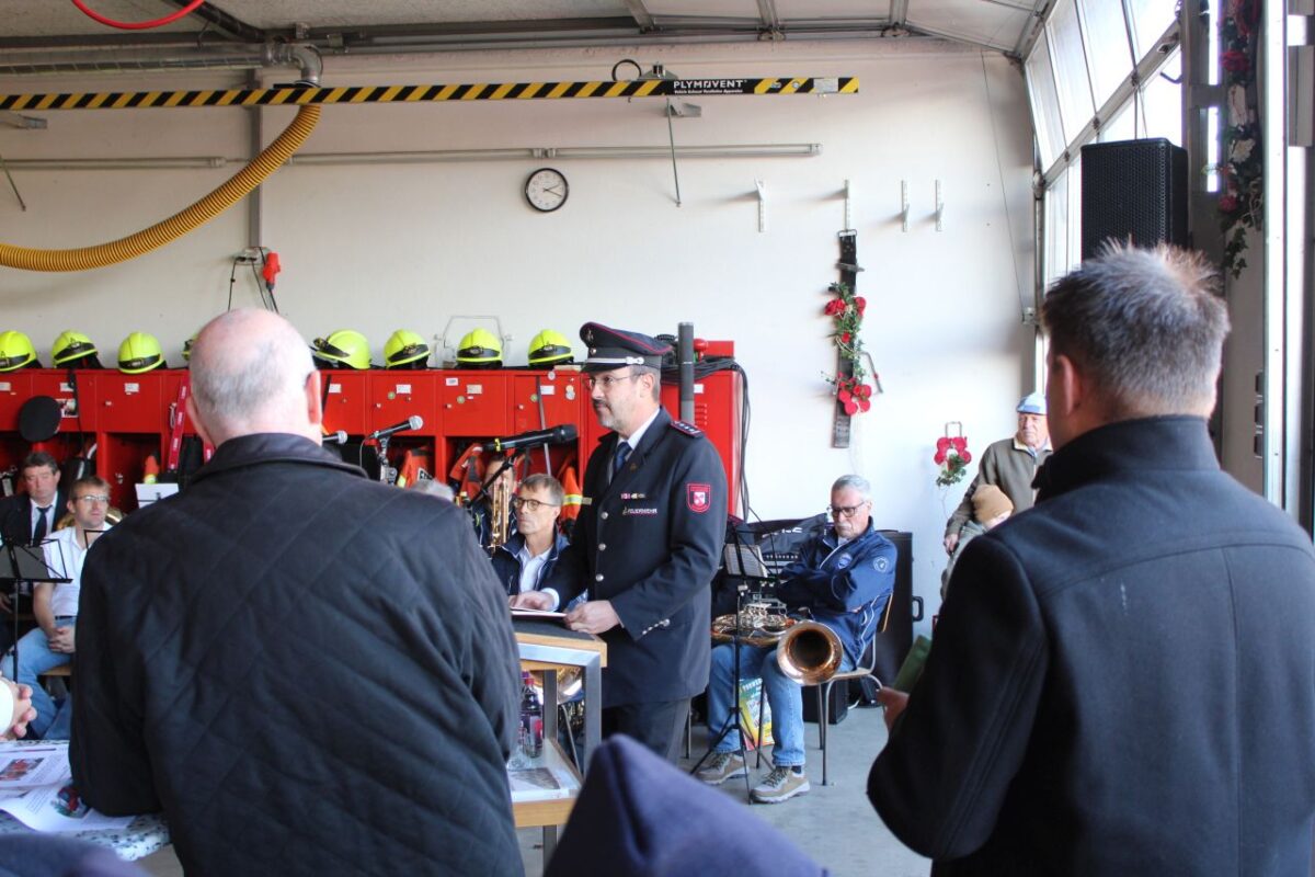 Die kleine Feierstunde wurde von der kleinen Besetzung des Musikvereins Seedorf, die „Hinterhofmusikanten“, unter anderem mit dem Feuerwehrkameraden-Marsch von Albert Bürger umrahmt.