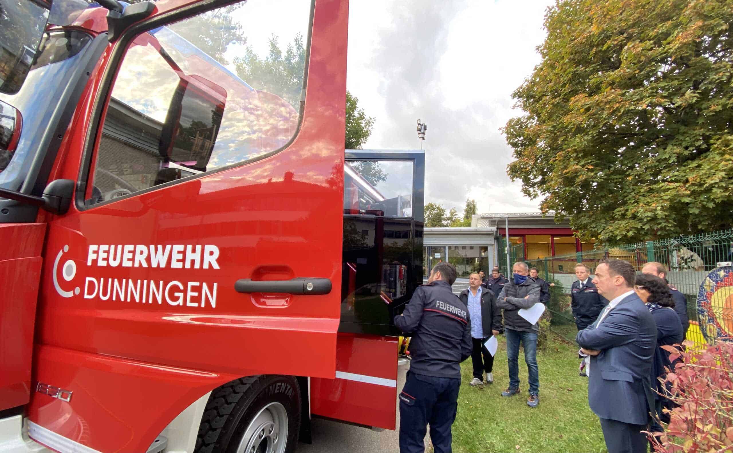 Das sind große Ereignisse, die nur alle paar Jahrzehnte passieren und die jeweils einen großen Fortschritt für das örtliche Rettungswesen bedeuten: der Ersatz eines alten und altgedienten Fahrzeugs durch ein nagelneues. Bei der Feuerwehr Dunningen ist die Freude groß, denn seit ein paar Tagen ist das neue Hilfeleistungslöschgruppenfahrzeug HLF 20 da. Es ersetzt ein knapp 30 Jahre altes Löschfahrzeug. Schon ein paar Tage in der Gemeinde, wurde die Neuheit am Montag dem Gemeinderat und der Presse öffentlich vorgestellt.