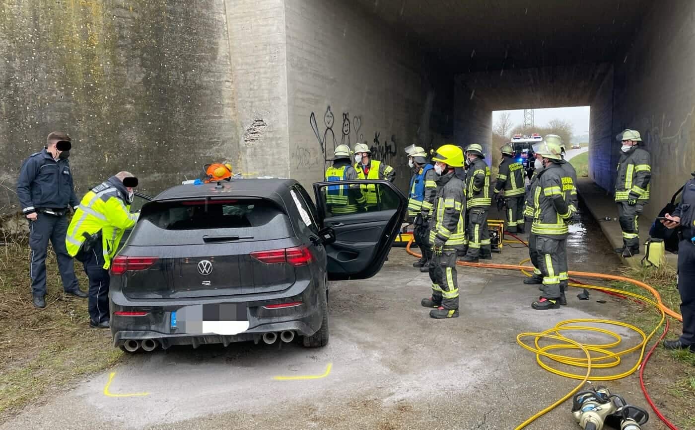 Unser ursprünglicher Bericht: Dem Anschein nach mit hoher Geschwindigkeit ist das PS-starke Auto auf die linke Außenwand der Unterführung der A 81 geprallt. Die Strecke: ein Verbindungssträßchen zwischen den Gemeinden Deißlingen und Dauchingen.