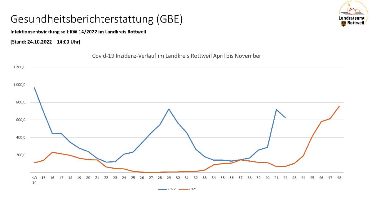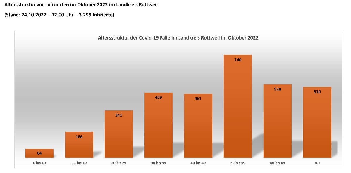 Derweil ist die Herbst-Welle von Corona wieder im Gang. Die Inzidenz-Spitze von über 750 ist wieder am Abklingen. Aber die Inzidenz sei „nicht mehr das Maß aller Dinge“, sagte Landrat Dr. Wolf-Rüdiger Michel beim telefonischen Pressegespräch des Amts. Auch weil wesentlich mehr Menschen angesteckt seien, als die Zahlen aussagen. Das liege zum einen daran, dass bei den milden Verläufen der gerade herrschenden BA-Varianten des Virus viele Menschen gar nicht mitbekommen, dass sie infiziert seien. Und zum anderen sei die Pflicht zum PCR-Test entfallen, wenn jemand einen positiven Schnelltest hatte. Und in die Statistik würde nur aufgenommen, wenn ein PCR-Test den Virus nachgewiesen habe. Er schätzt, dass doppelt so viele Menschen angesteckt seien wie gemeldet.