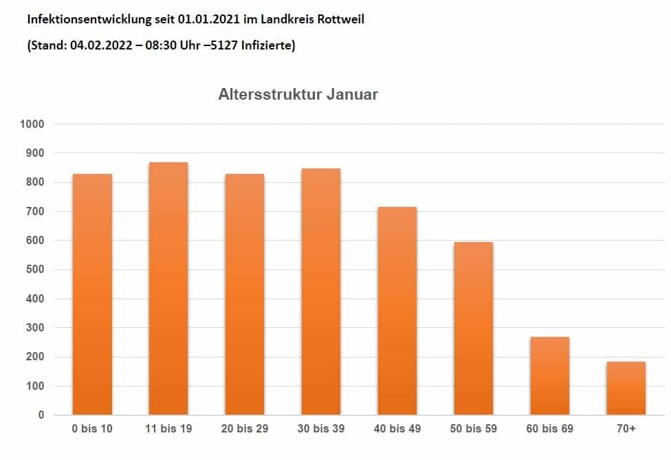 Zu den aktuellen Zahlen berichtete Michel, dass der Kreis Rottweil mit einer aktuellen Sieben-Tage-Inzidenz von 1170 im Vergleich zu den Nachbarkreisen besser da stehe. Er habe aber gelernt, dass das sich sehr schnell ändern können. Besonders hoch seien die Infektionszahlen bei Kindern und Jugendlichen. Bei den über 60-Jährigen dagegen längen sie weit unter dem Durchschnitt. Das zeige, „Impfen hilft gegen Ansteckungen und schwere Verläufe“. Seit Beginn der Pandemie hätten sich etwa 23.000 Menschen im Kreis mit dem Virus angesteckt.