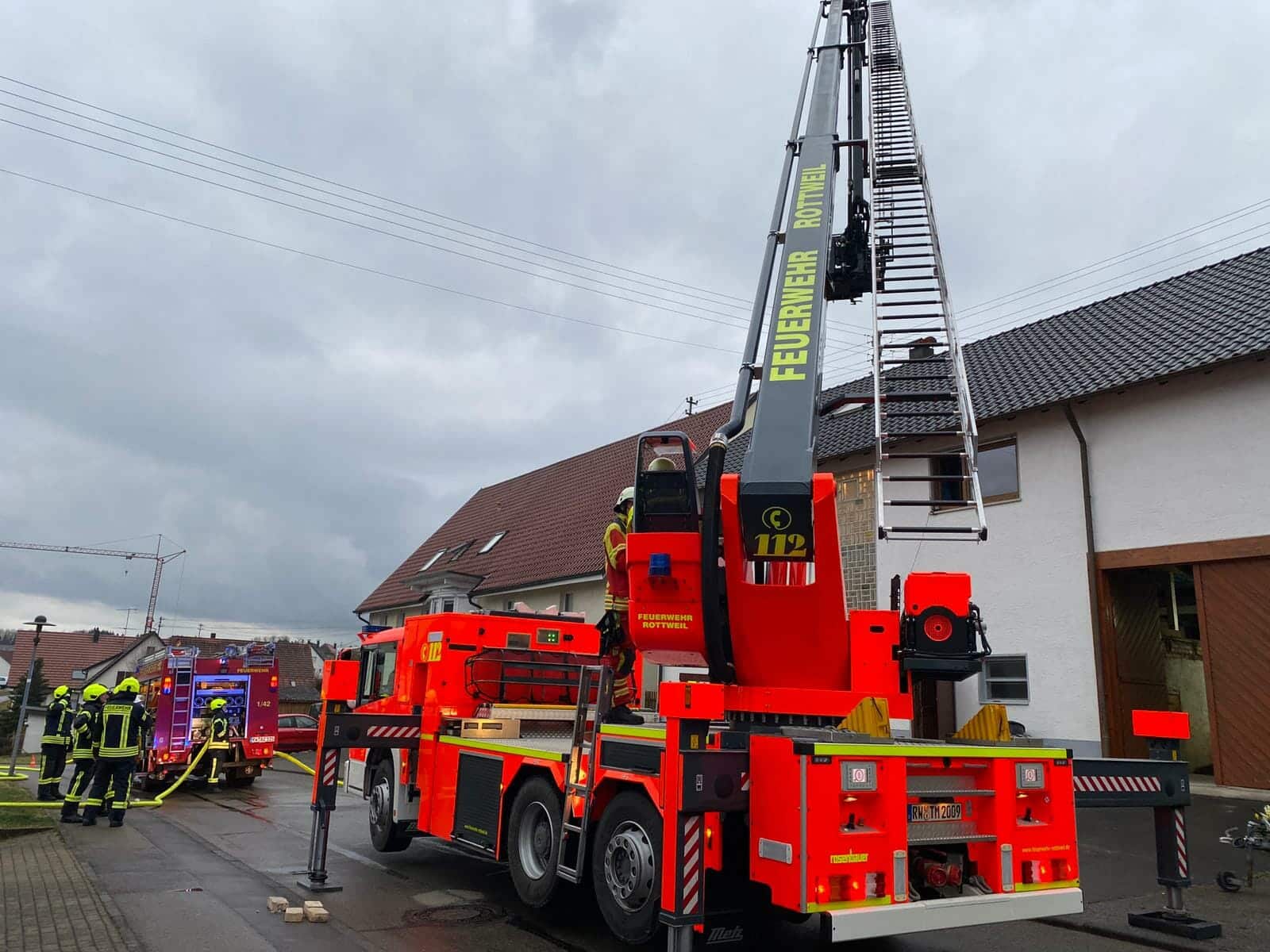 Die Einsatzleitung hatte der Wellendinger Abteilungskommandant Christoph Hafner. Seine Abteilung war mit 18 Kräften und zwei Fahrzeugen vor Ort. Zur Unterstützung sind aus Rottweil zwei Fahrzeuge – neben der Hubarbeitsbühne auch Stadtbrandmeister Frank Müller im Kommandowagen – und vier Kräfte dazu gestoßen.