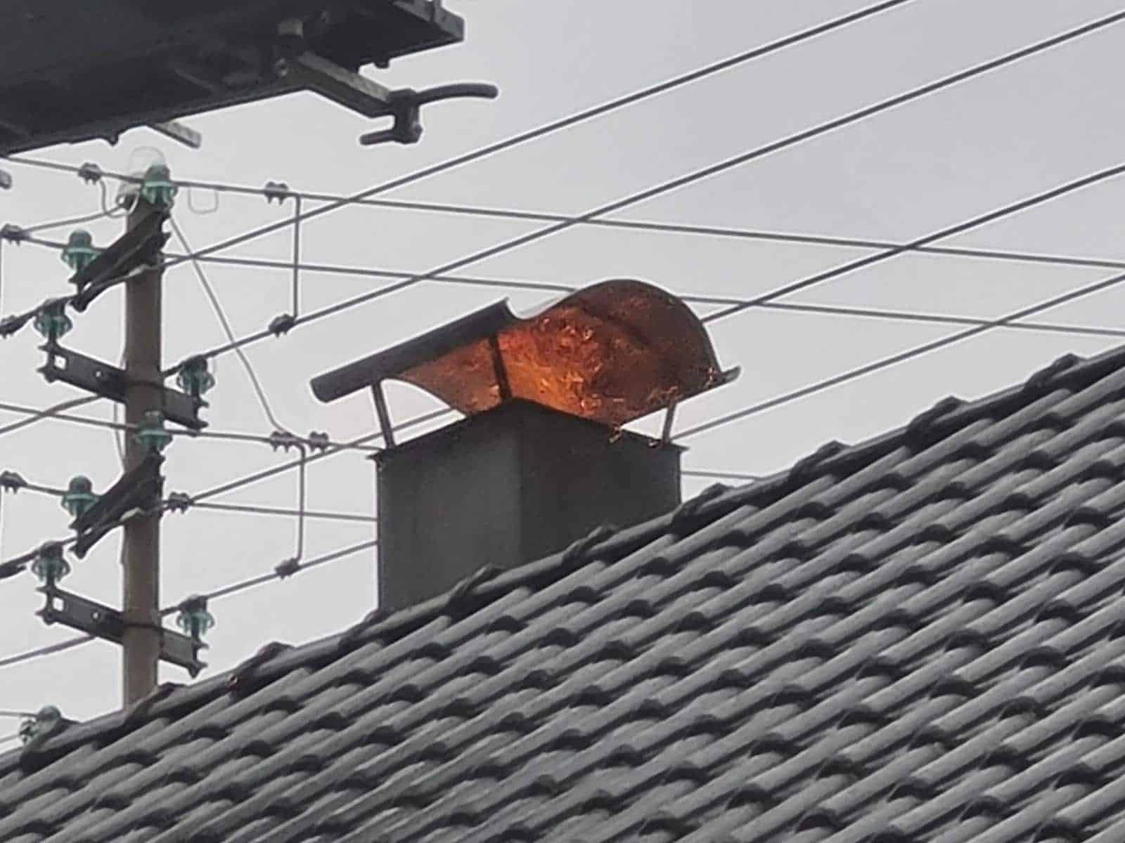 Als die Kollegen aus Wellendingen ankamen, war nach einem Blick mit einem Spiegel in den Kamin klar, dass dieser innen bereits zu brennen begonnen hatte. Um das Feuer zu bekämpfen – übrigens nicht etwa mit Wasser, dass sich bei Kontakt mit den Flammen explosionsartig ausdehnt und in einem Kamin für eine Ausdehnung keinen Platz hat – wurde die Hubarbeitsbühne aus Rottweil nachalarmiert. Von dieser aus konnte dann eine schwere Eisenkugel an einer Kette in den Kamin herab gelassen werden. Auf diese Weise machen die Einsatzkräfte den Schornstein wieder frei, der Rauch kann abziehen, das Feuer verlischt.