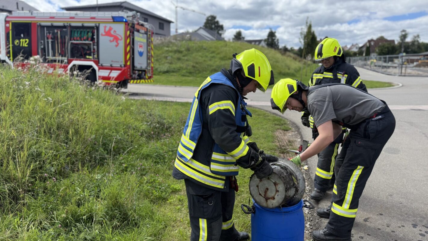 Zweimal war die Feuerwehr Wellendingen zunächst allein bis zu diesem Sonntagnachmittag im Einsatz: Noch in der Nacht, gegen 0.10 Uhr, galt es, eine Türe zu öffnen. Hintergrund war eine Vermisstensuche, in dem Haus wurde die Vermisste vermutet, die vielleicht Hilfe benötigen würde. Zu einer raschen Türöffnung besitzen die Einsatzkräfte in den Wehren nicht nur das Werkzeug, sondern auch das nötige Wissen. Und gegen 14.40 Uhr rückten die Floriansjünger erneut aus. Diesmal zu einem Schrottcontainer in der Neufraer Straße in Wellendingen. Aus dem floss Öl, beziehungsweise eine ölige schwarze Flüssigkeit. Die lief schon in Richtung Kanalisation. Wie es vor Ort hieß, habe aber ein Korb im Einlaufschacht des Kanals das Öl bereits aufgefangen, gehe man nicht von einer Umweltverschmutzung aus. Dennoch hatten die Einsatzkräfte einige Zeit mit dem Binden des Öls und dem Saubermachen zu tun. Nur, weil jemand hier unsachgemäß Müll entsorgt hat. Die Polizei war mit einer Streife vor Ort. Die Ermittlungen gegen den Müllsünder dürften aufgenommen worden sein.
