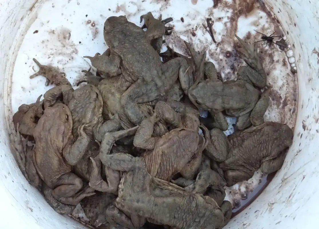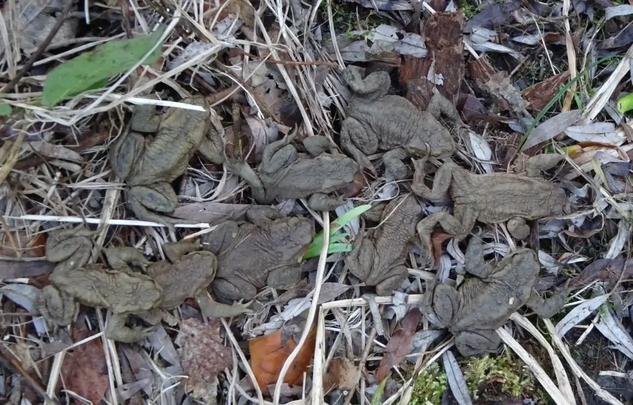 Dutzende Kröten auf der Straße
