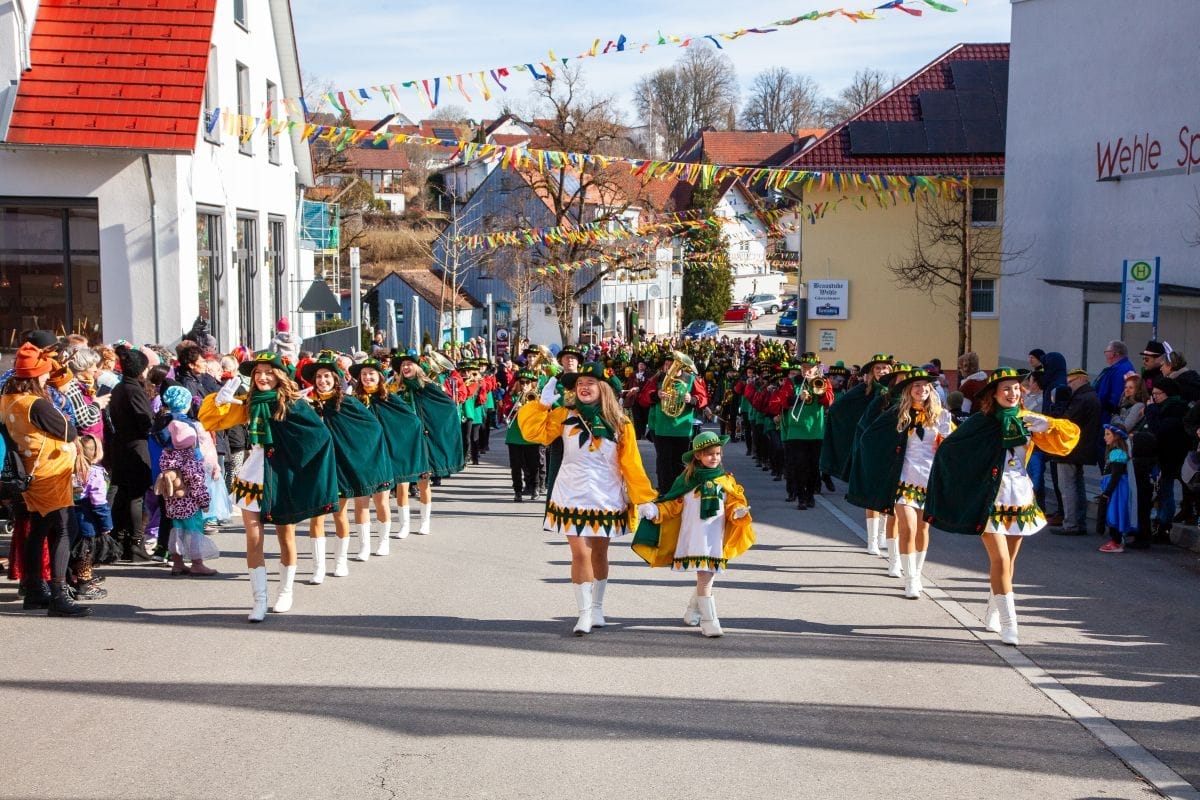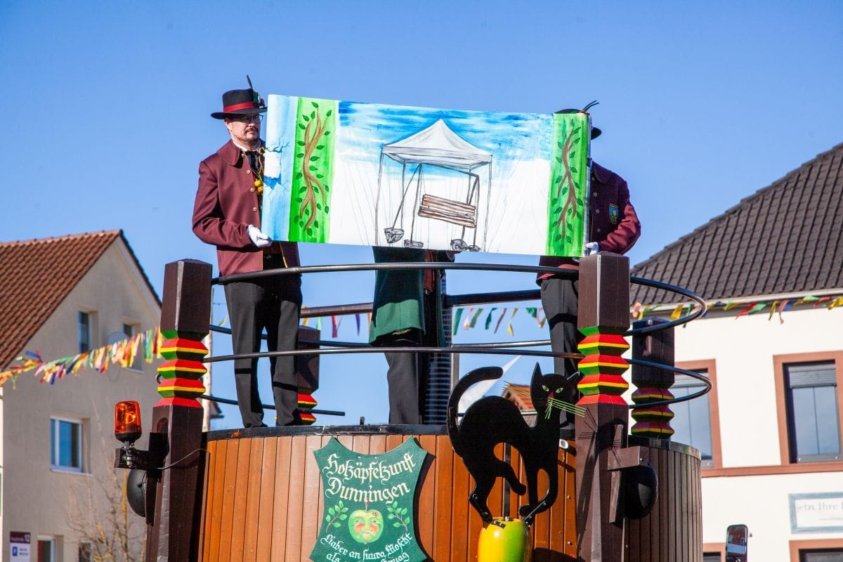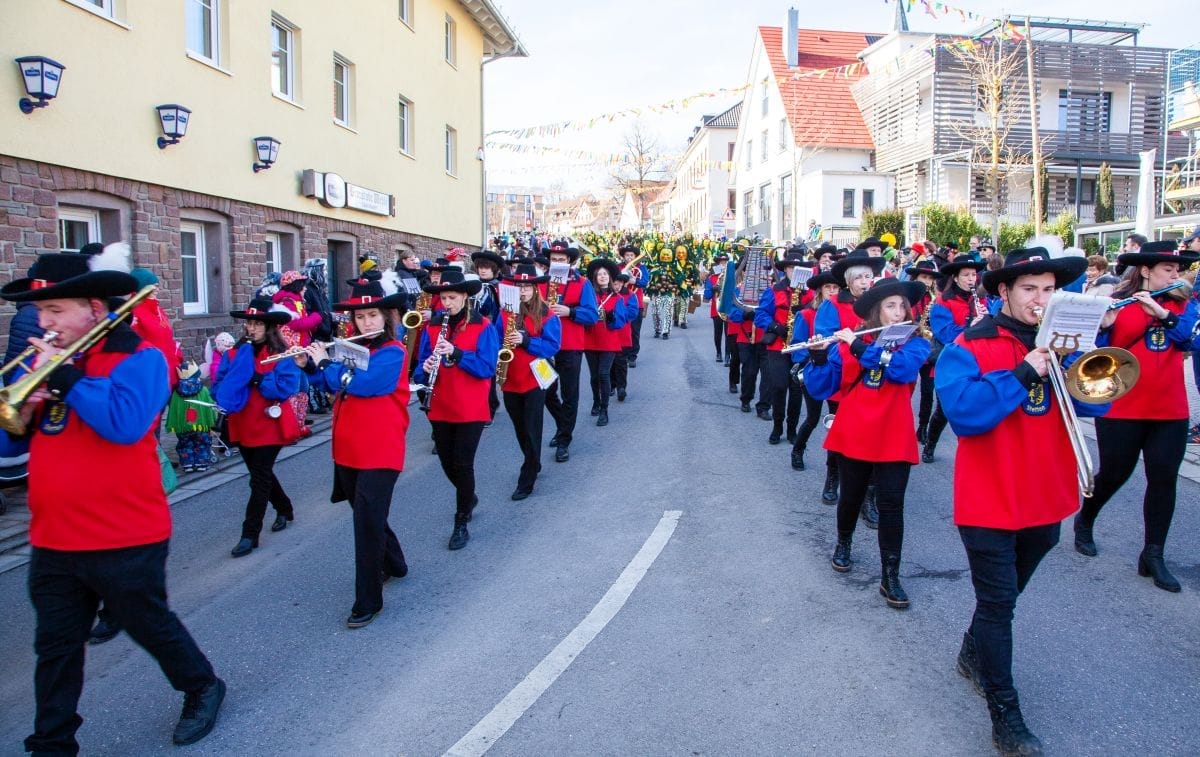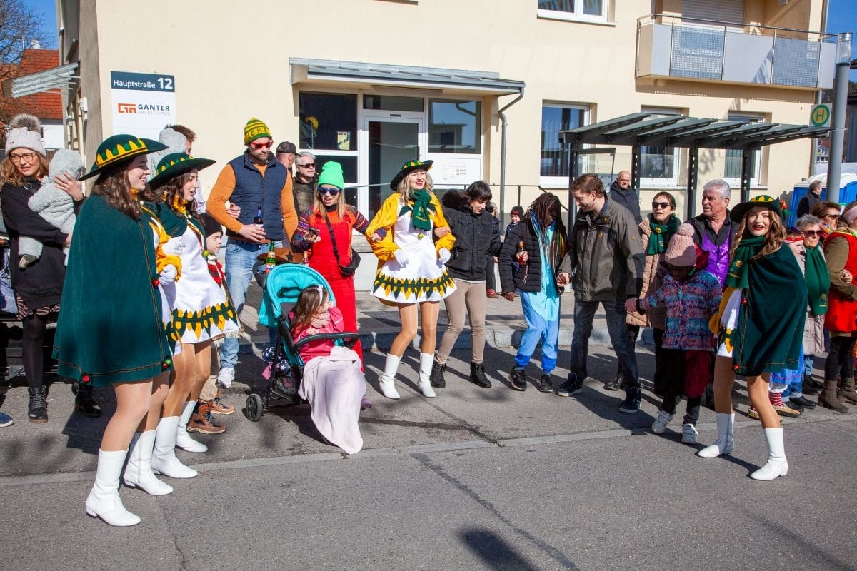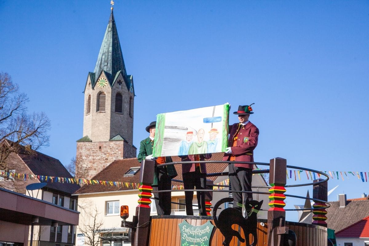 Angeführt von den Holzäpfelmädle und dem Musikverein zog der närrische Lindwurm in mehreren Gruppen unterteilt – auch der Musikverein Horgen führte eine Gruppe an – von der Rössle-Kreuzung die Hauptstraße runter bis in die Rottweiler Straße und von dort in die Dorfbachstraße wieder zurück bis in die Rathausstraße.