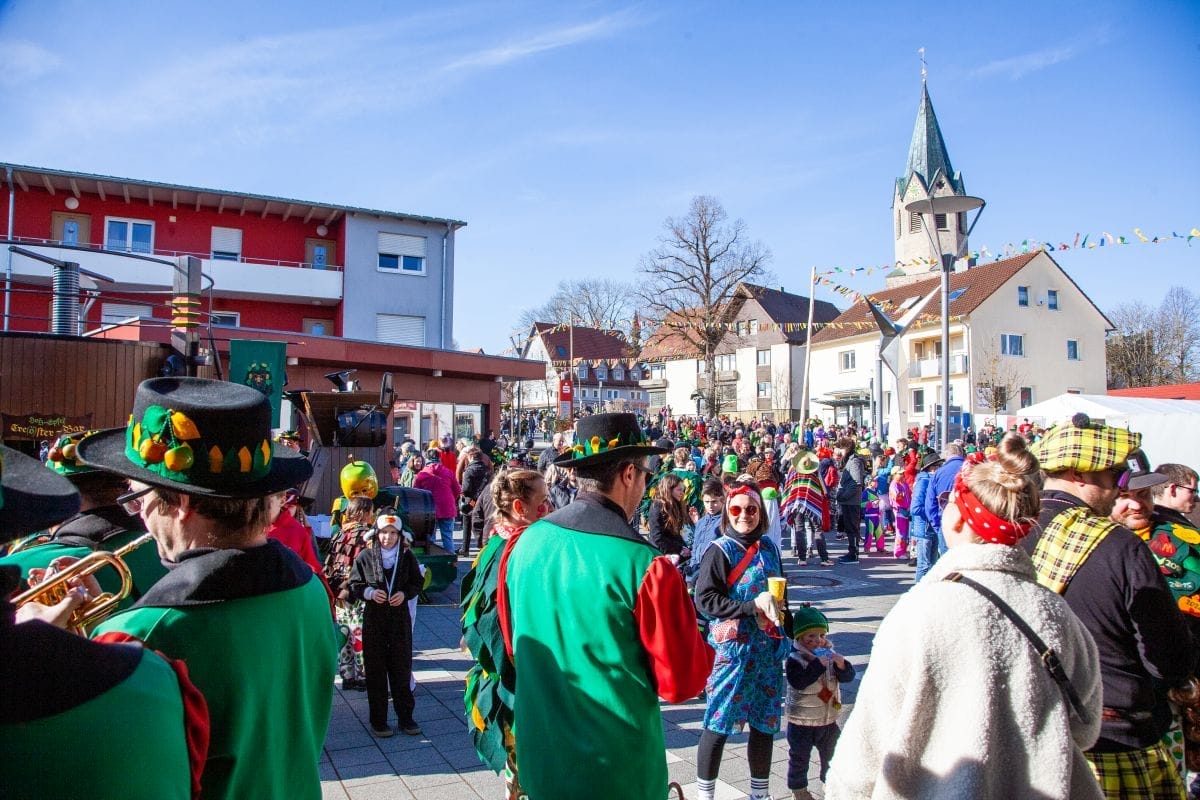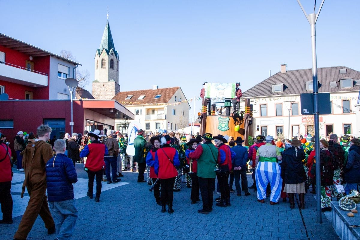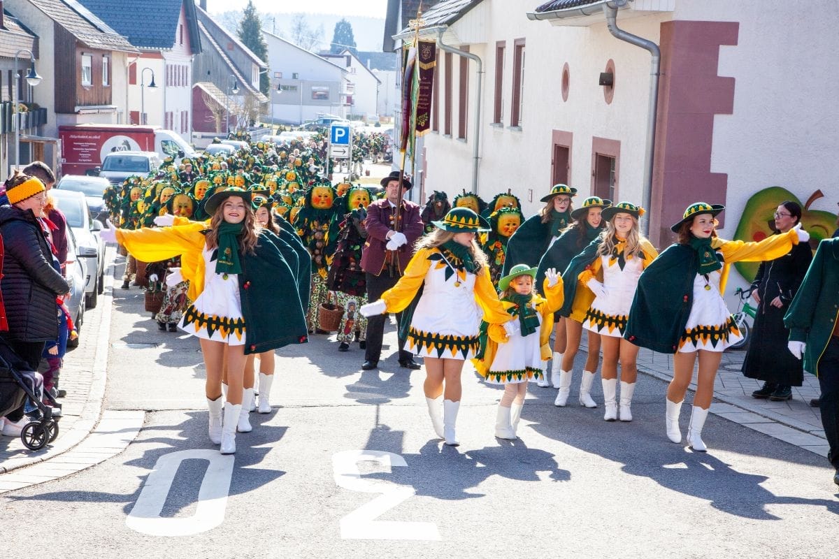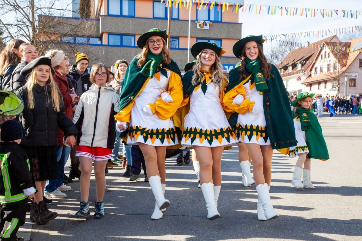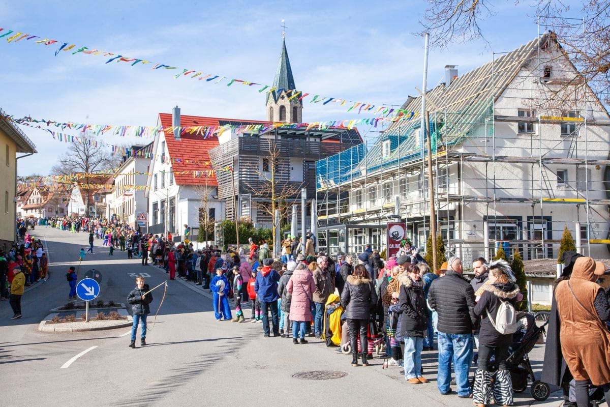 Angeführt von den Holzäpfelmädle und dem Musikverein zog der närrische Lindwurm in mehreren Gruppen unterteilt – auch der Musikverein Horgen führte eine Gruppe an – von der Rössle-Kreuzung die Hauptstraße runter bis in die Rottweiler Straße und von dort in die Dorfbachstraße wieder zurück bis in die Rathausstraße.