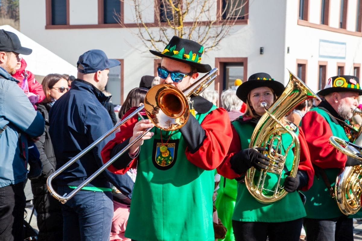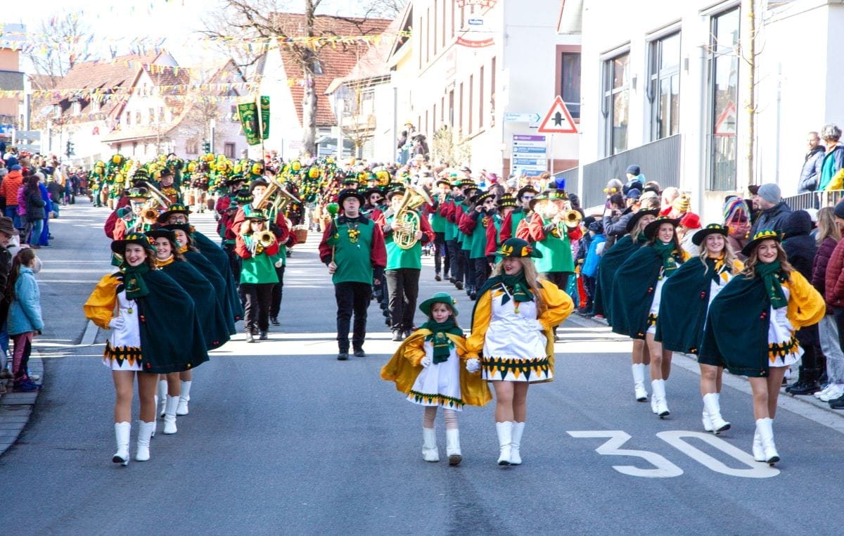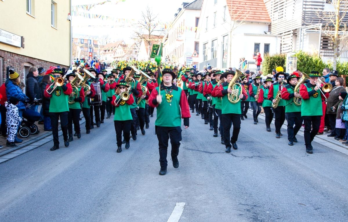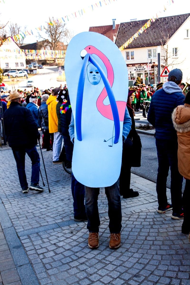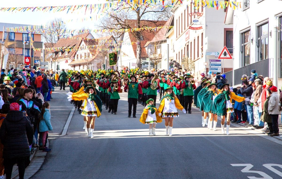 Angeführt von den Holzäpfelmädle und dem Musikverein zog der närrische Lindwurm in mehreren Gruppen unterteilt – auch der Musikverein Horgen führte eine Gruppe an – von der Rössle-Kreuzung die Hauptstraße runter bis in die Rottweiler Straße und von dort in die Dorfbachstraße wieder zurück bis in die Rathausstraße.