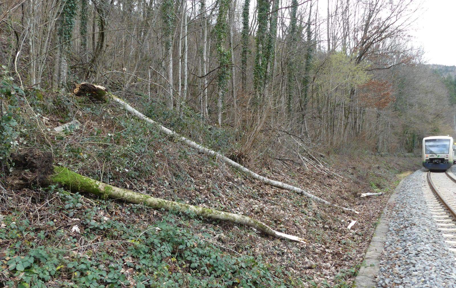 Schiltach. Weil bei Vorderlehengericht zwei Bäume auf den Gleisen lagen, kam es am Donnerstag am späten Vormittag zu einen Zugunglück. Niemand wurde verletzt, der Schaden war gering.