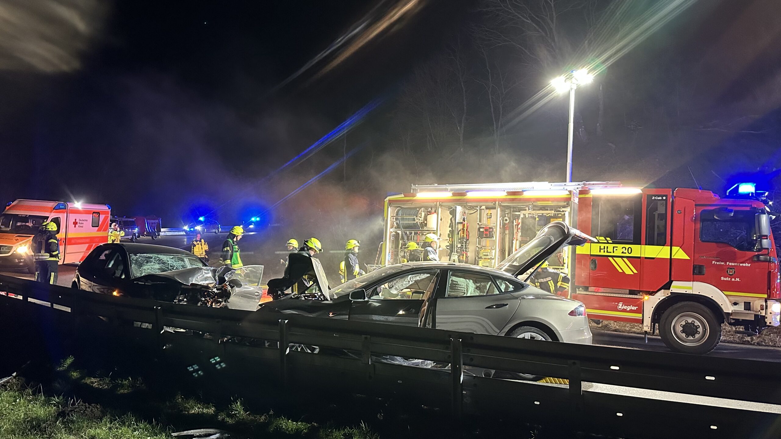 Unser Erstbericht: Die Feuerwehr Sulz und der Rettungsdienst samt Notarzt waren vor Ort. Die Balinger Straße, auf der der Unfall geschah, ist aktuell gesperrt (Stand: 21.30 Uhr). In einer scharfen Kurve prallten ein Seat-Leon und ein Tesla frontal zusammen. Zwei jüngere Frauen und ein Mann wurden dabei schwer verletzt. Sie kamen mit dem Rettungsdienst jeweils in eine Klinik.